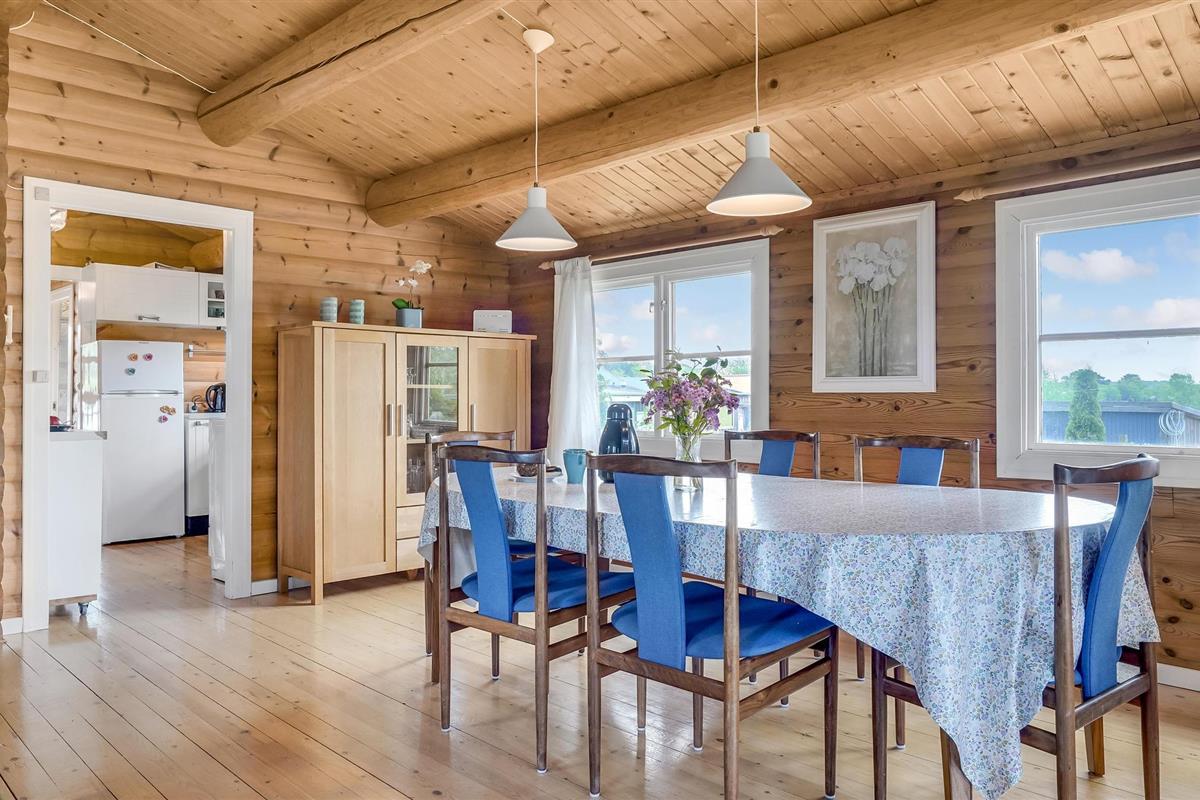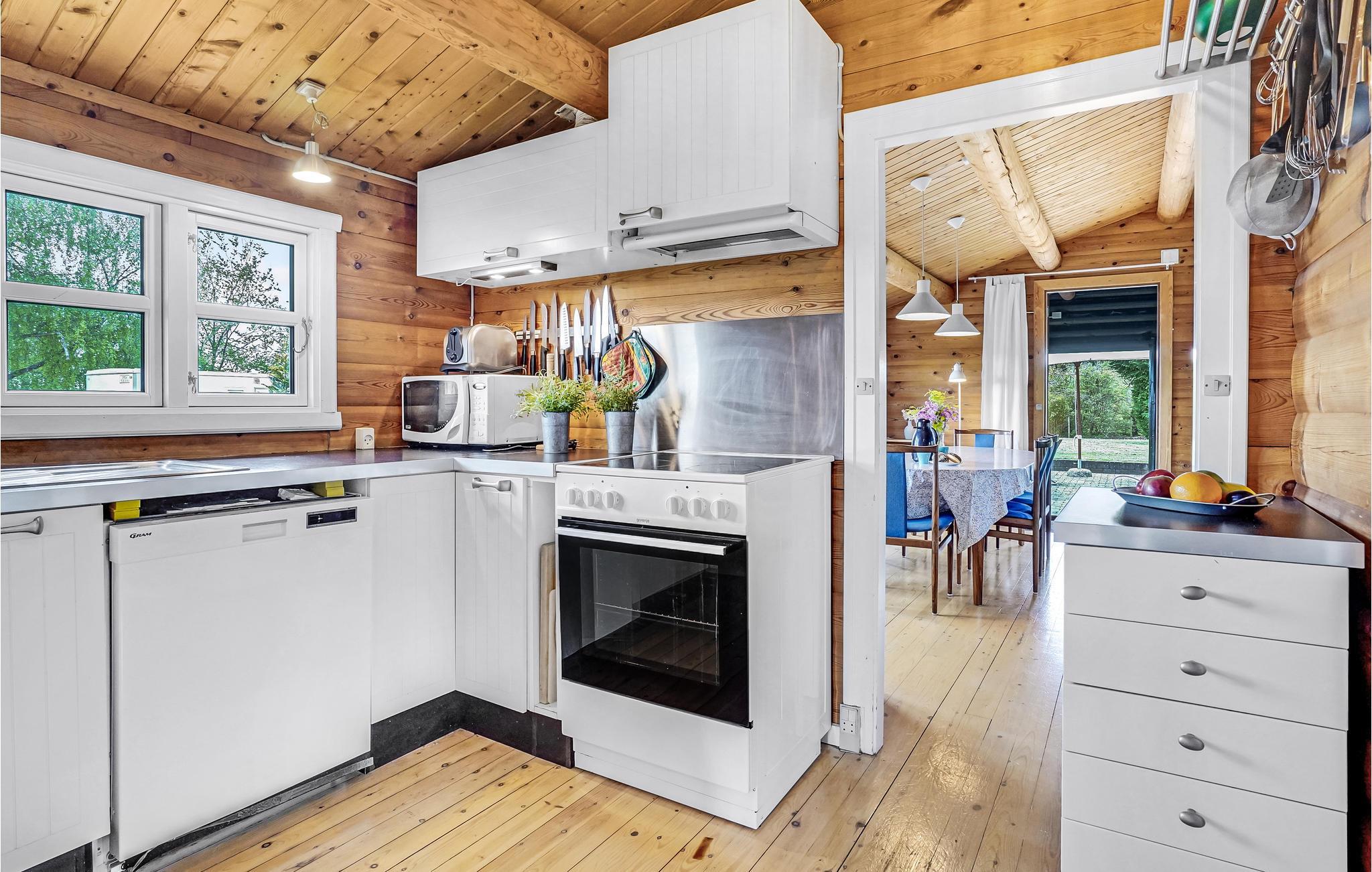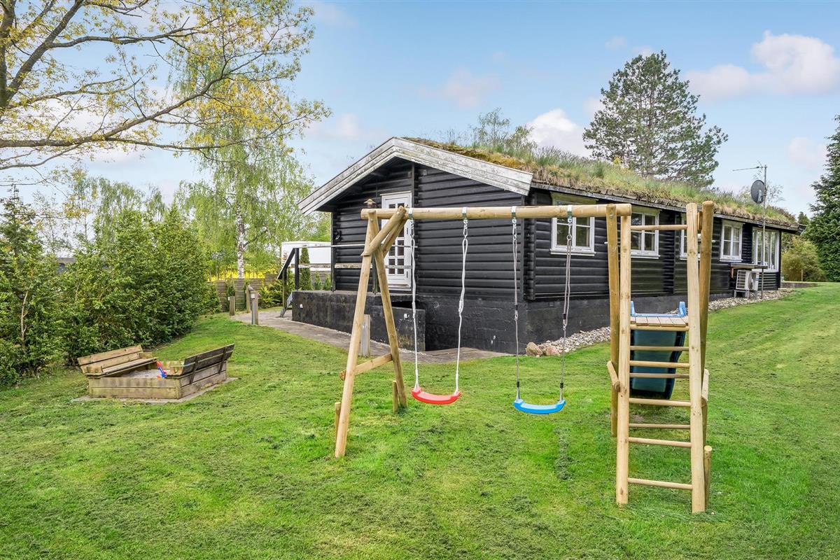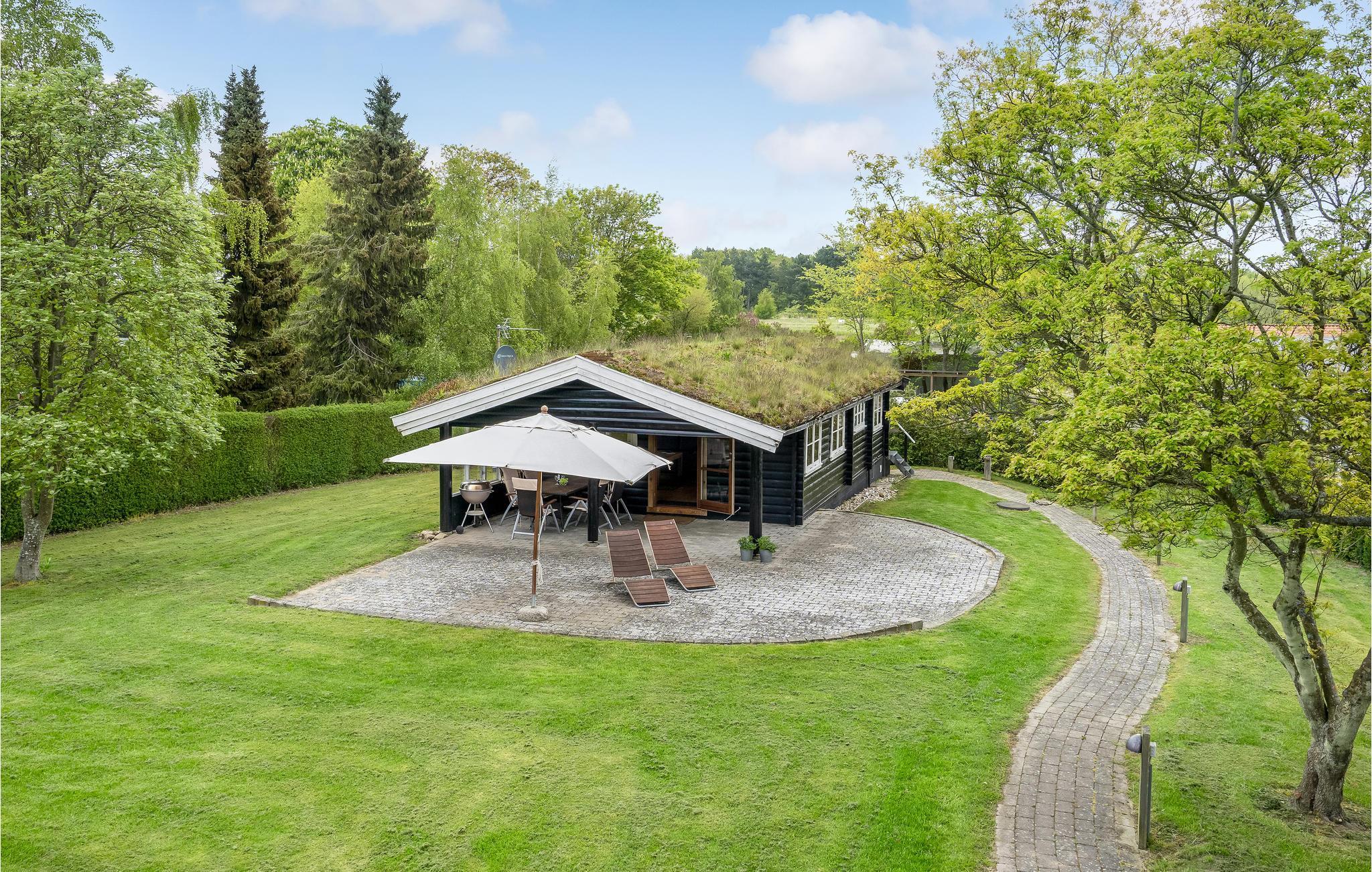 Deze charmante zwarte blokhut met een grasdak en gezellige kamers ligt in een rustige straat in Hornsved, dicht bij het fjord en Kulhuse, en nodigt uit tot ontspanning en gezelligheid. Het interieur van het huis ademt een warme sfeer uit dankzij de rustieke balken en biedt voldoende ruimte voor een klein gezin. Maak het jezelf gemakkelijk op de sofa's, hou een leuke filmavond en praat tot laat in de nacht.
