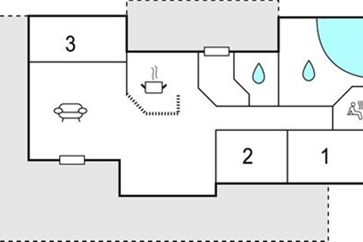 Buiten het vakantiehuis heeft u een buitendouche van 3 m² met watervaldouche tot uw beschikking.