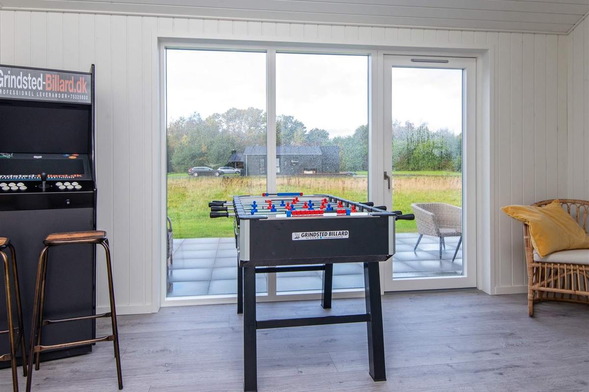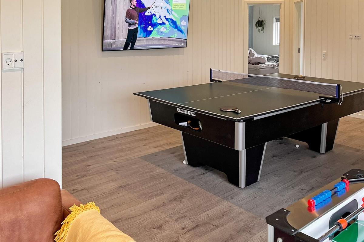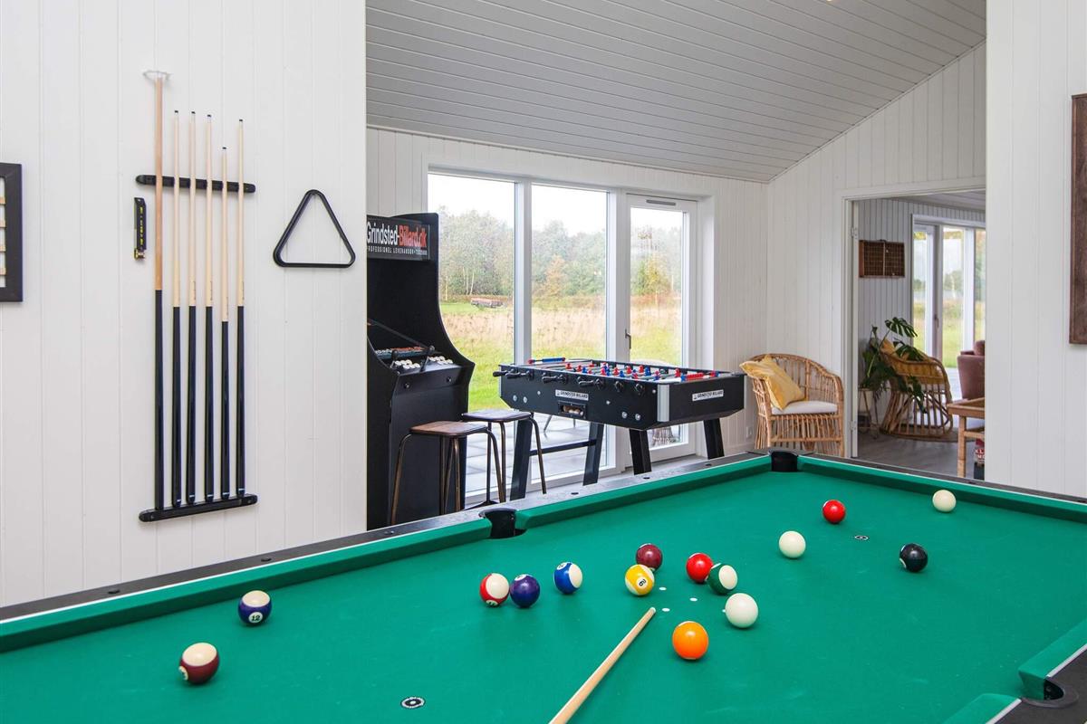 Das Ferienhaus ist innen sehr stilvoll sowie hell und einladend eingerichtet. Alle Zimmer sind geräumig und mit bequemen Betten ausgestattet. Die Küche ist zeitgemäß eingerichtet und im ansprechenden Wohnbereich bietet das große Fenster einen herrlichen Blick in die umliegende Natur. Es gibt freies WLAN im Haus. Der Aktivitätsraum ist für den Freizeitspaß aller Altersgruppen ausgestattet. Die Gegend lädt zu schönen Spaziergängen entlang des Seeufers ein.
