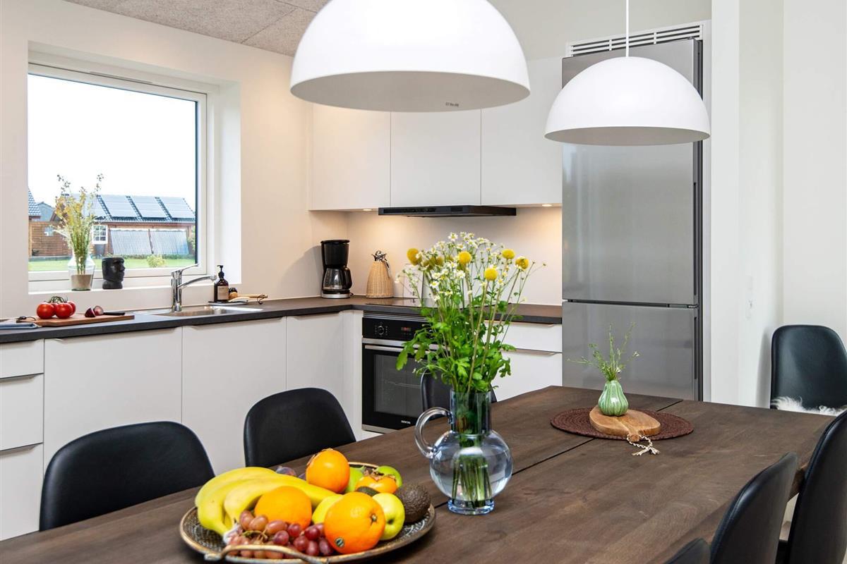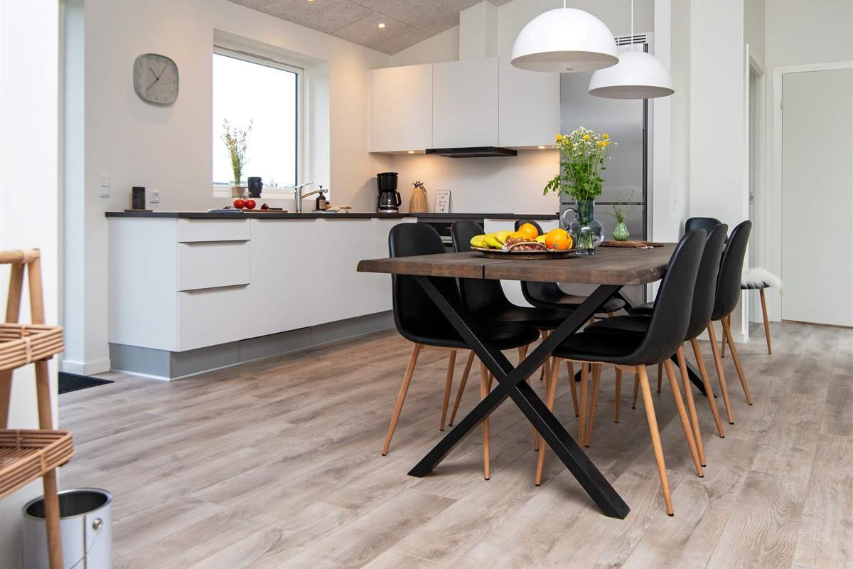 Innen ist das Haus äußerst stilvoll und einladend ausgestattet. Küche mit allen modernen Hilfsmitteln, offen integriert in den Wohn- und Essbereich für das Familienleben. In diesem Raum bieten die großen Fenster einen herrlichen Ausblick zur umliegenden Natur. Alle vier Schlafzimmer sind geräumig und mit guten Betten ausgestattet.