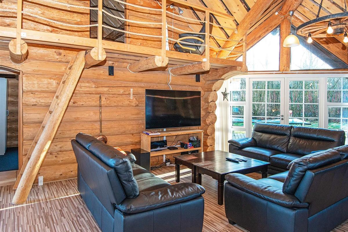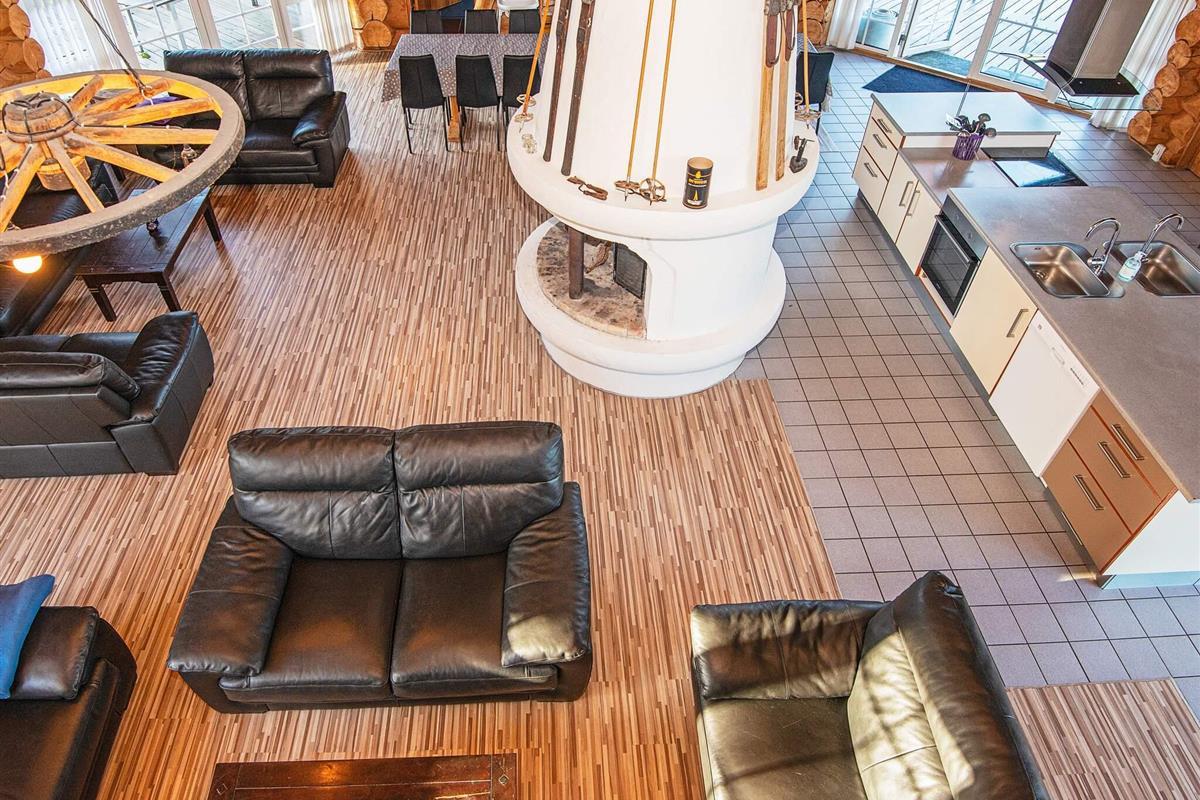 Das ganz individuell gestaltete Ferienhaus hat einen einladenden Außenpool, der das ganze Jahr über genutzt werden kann. Das Ferienhaus wurde in solidem, kanadischem Baustil, mit großen, groben Holzbalken und einem offenen Kamin in der Mitte des äußerst geräumigen, offenen Küchen-/Wohnbereichs erbaut.