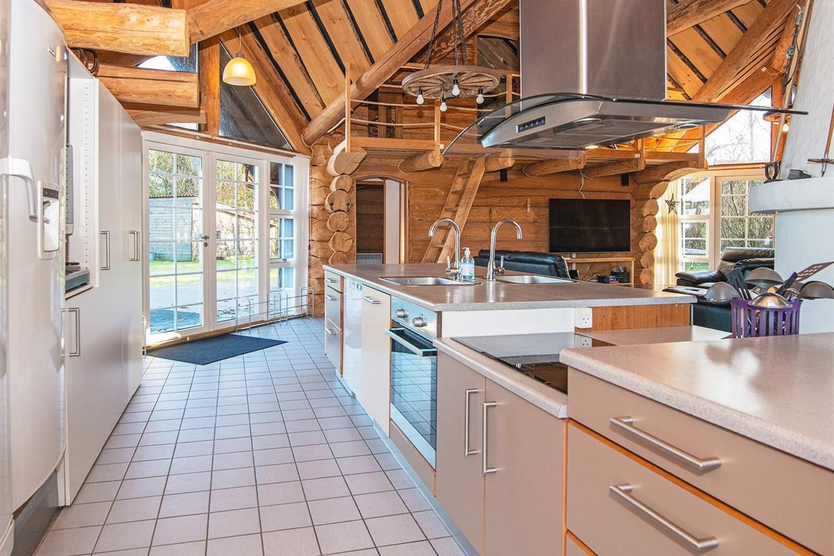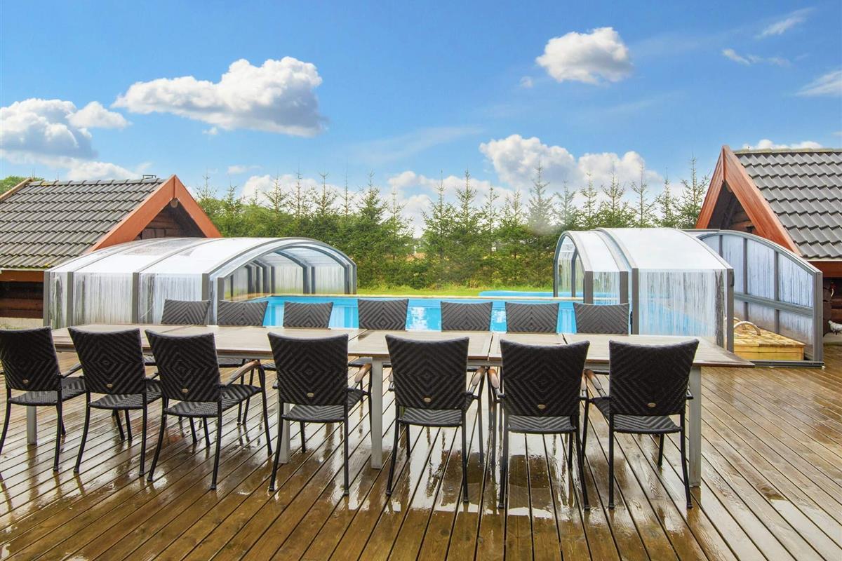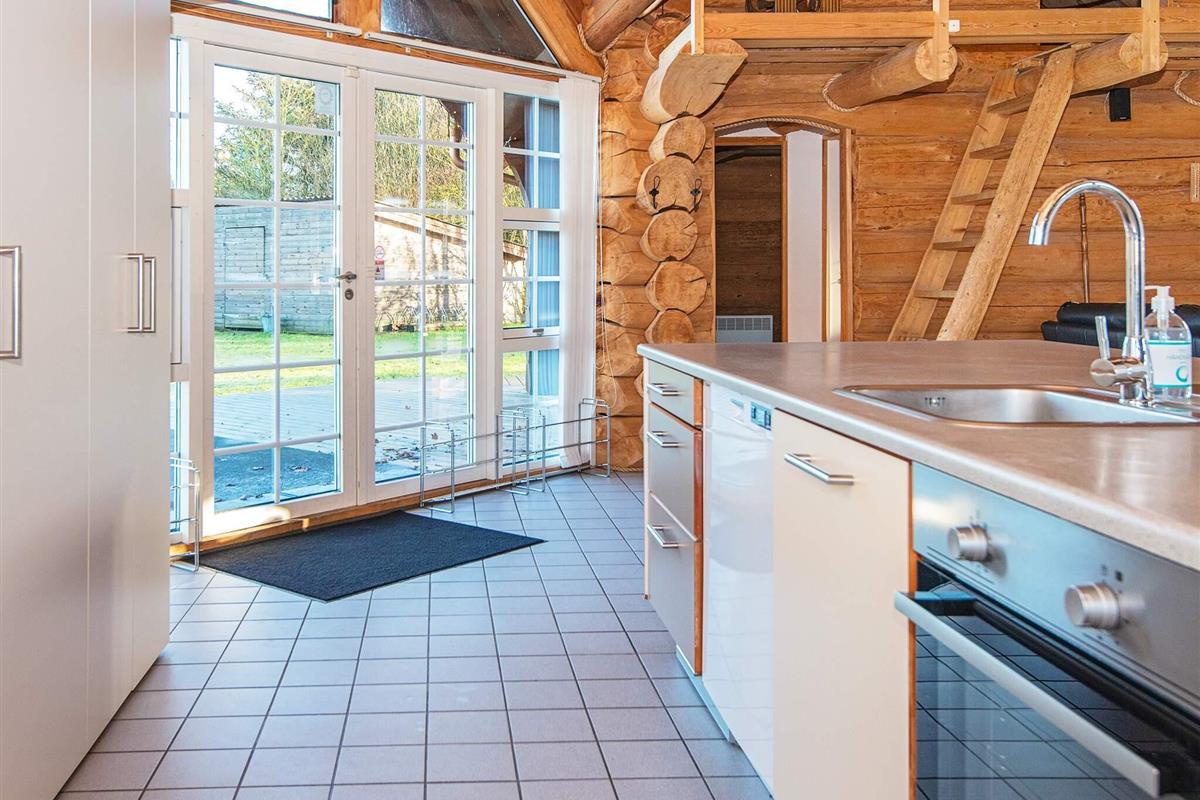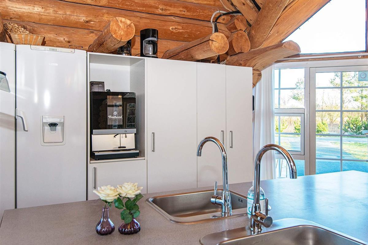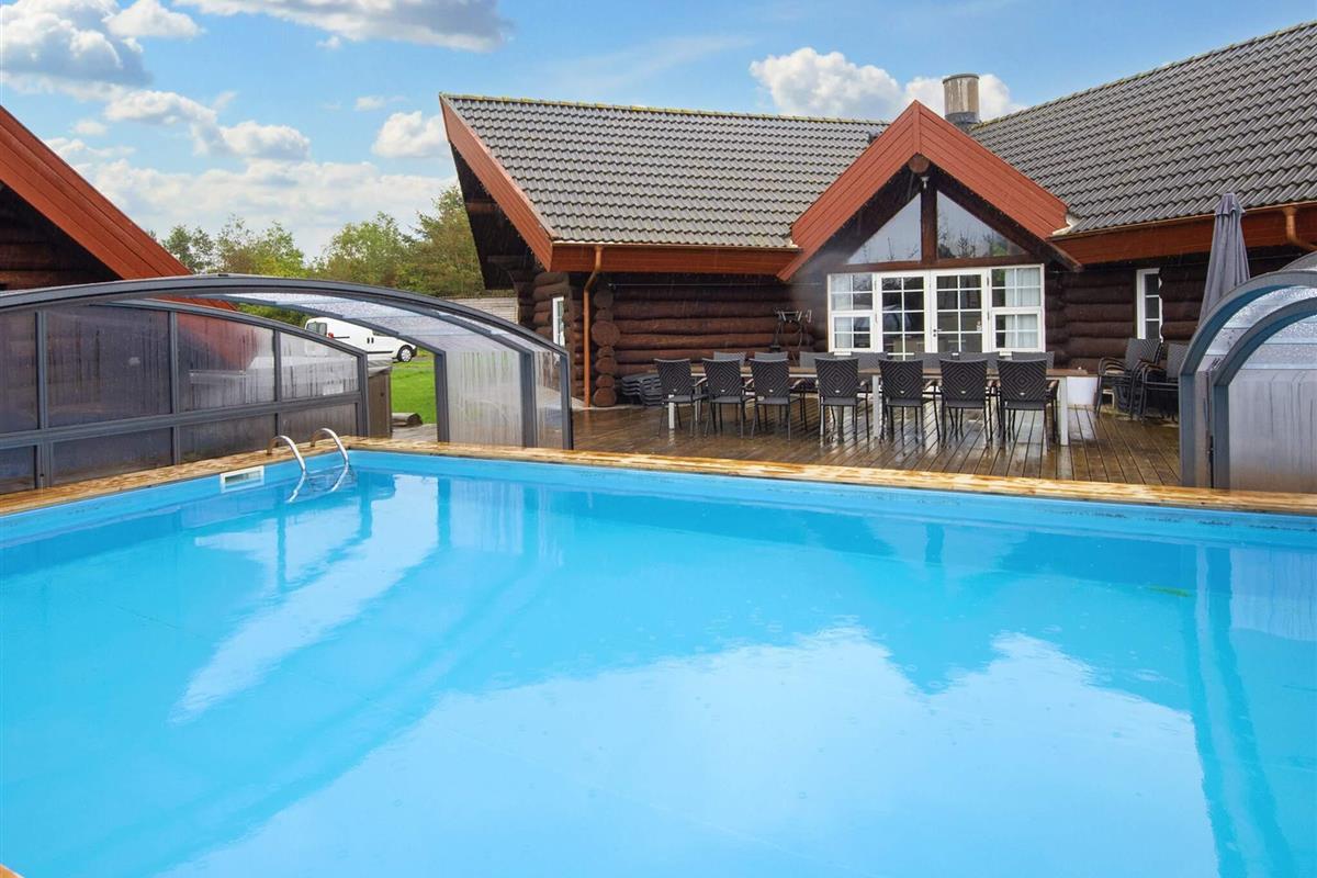 Unweit des Sees Kvie Sø finden Sie dieses einzigartige, sehr geräumige Blockhaus mit Pool und großem Whirlpool im Außenbereich für den Badespaß. Wohnfläche, Einrichtung, Lage sowie Terrassengröße sind überdurchschnittlich und zählen zu den zahlreichen Pluspunkten dieses Feriendomizils.