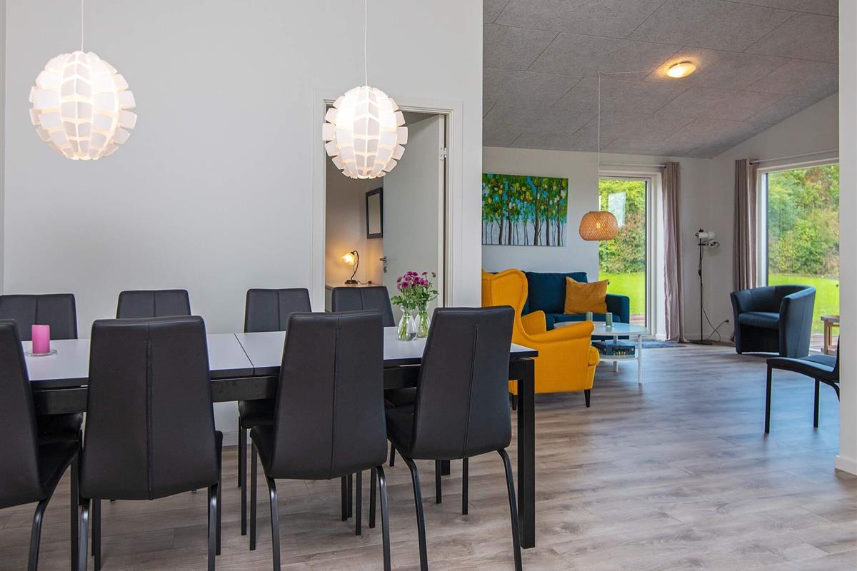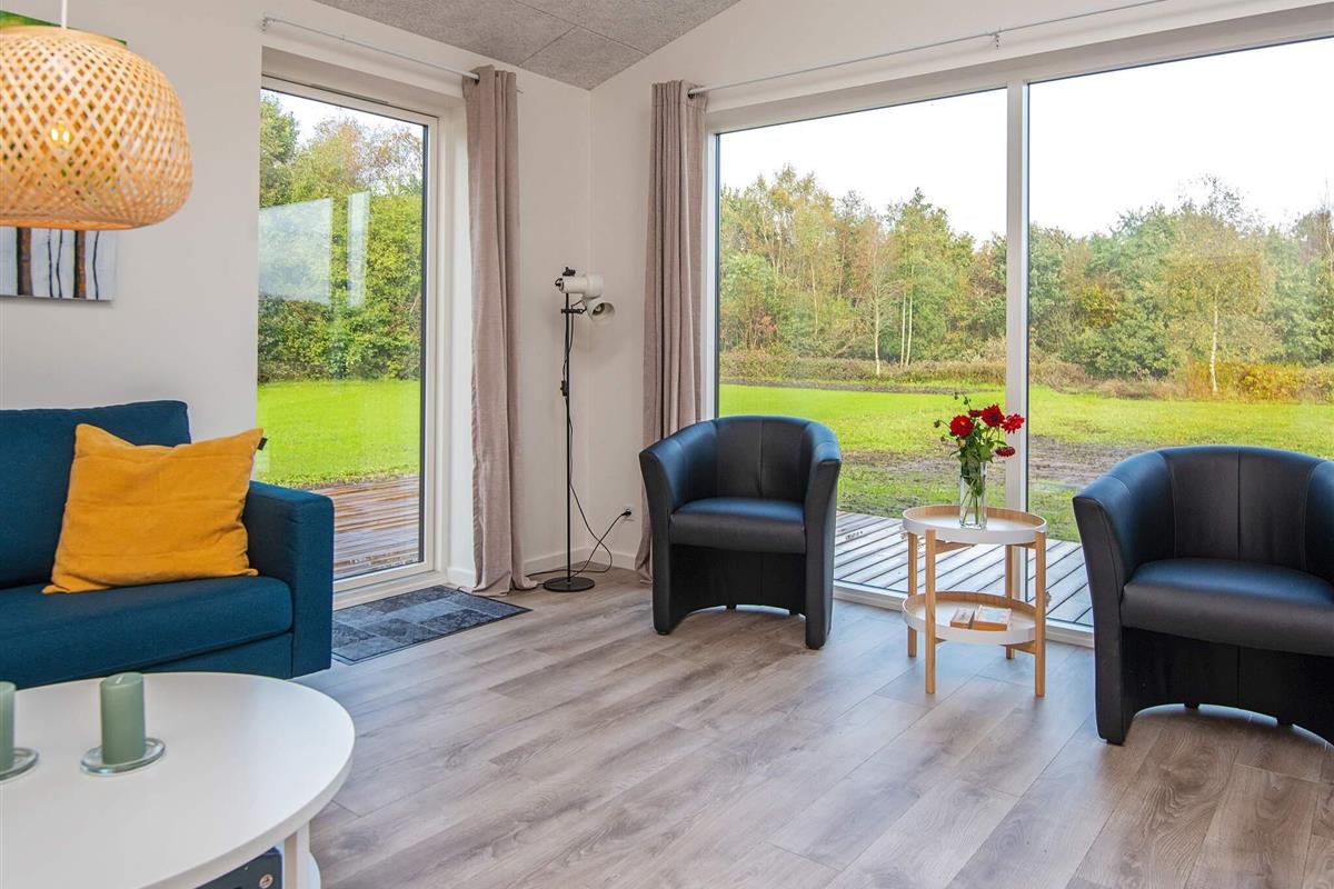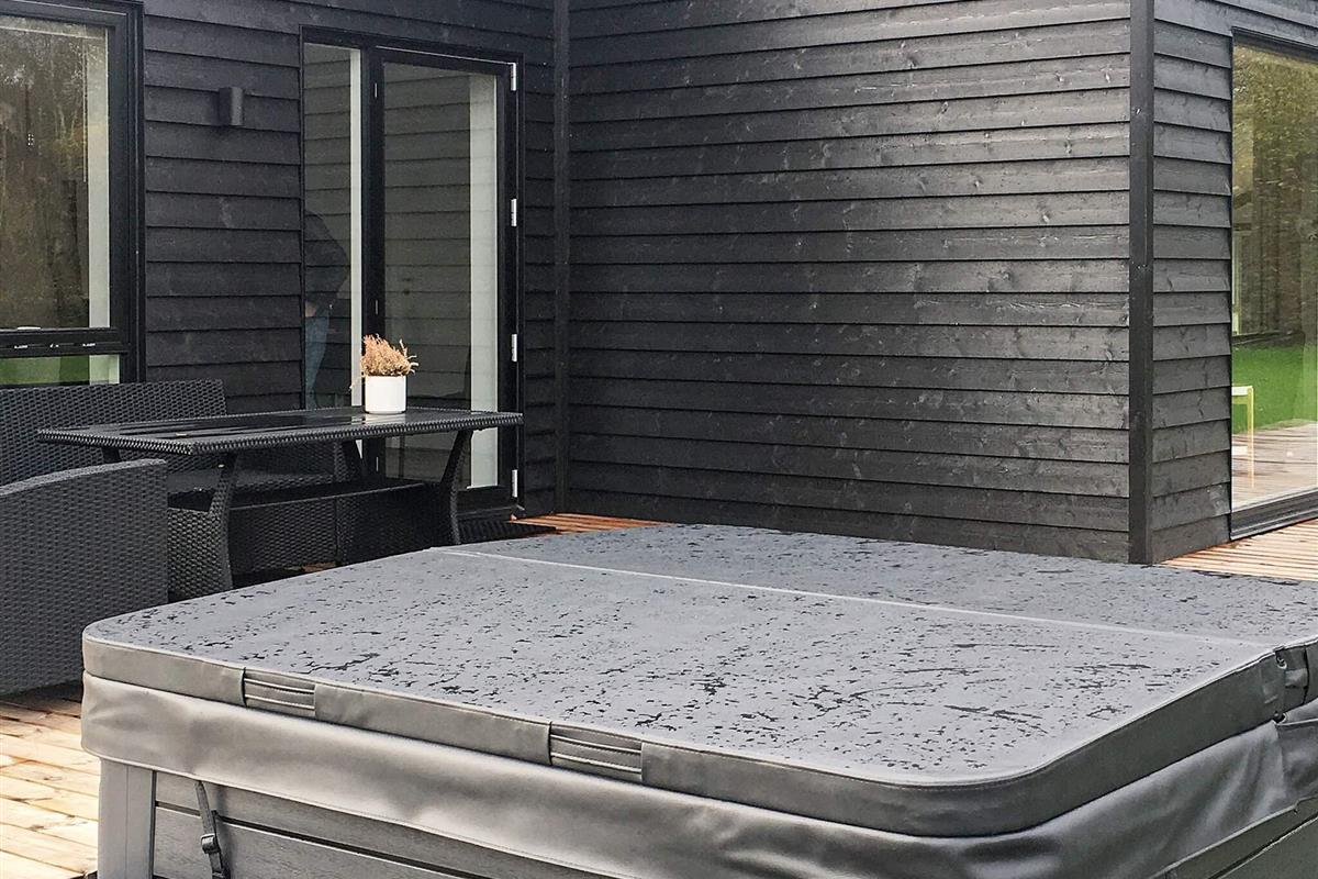 Ferienhaus mit Standwasser-Whirlpool im Außenbereich sowie herrlicher Panoramaaussicht zum nahen See Kvie Sø. Das geräumige Haus ist äußerst stilvoll sowie hell und einladend eingerichtet.