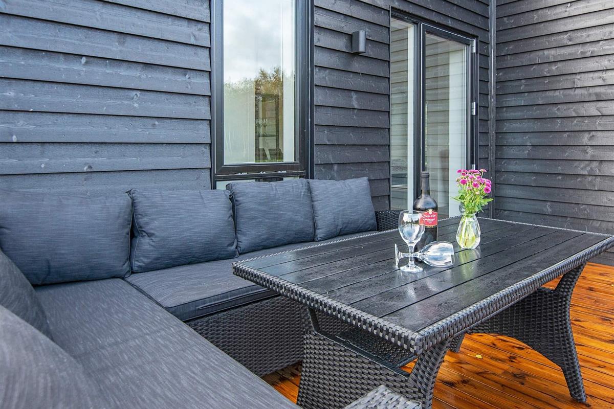 Alle vier Schlafzimmer sind geräumig und mit guten Betten ausgestattet. Die Küche ist mit allen modernen Hilfsmitteln eingerichtet und im Wohnzimmer ergibt sich durch die große Fensterfläche ein schöner Ausblick in die umliegende Natur. Freies WLAN im Haus. Genießen Sie die Sonnentage draußen auf der Terrassenfläche mit Gartenmöbeln und Außen-Whirlpool.