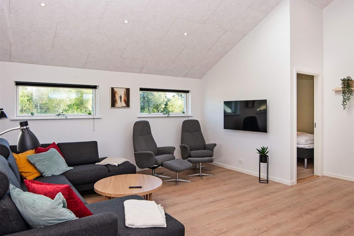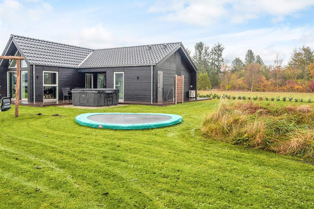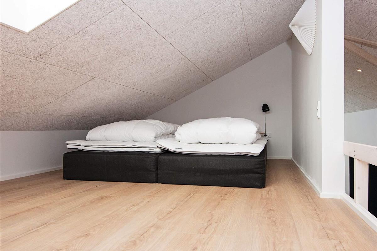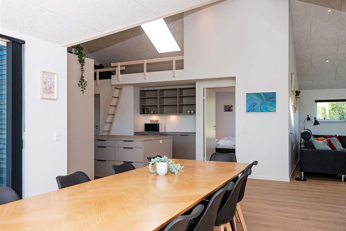 Bei Kvie Sø finden Sie dieses von Architektenhand geschaffene Ferienhaus mit Whirlpool im Außenbereich und viel Platz für 10 Personen in den Schlafzimmern sowie für 2 weitere Personen oben auf dem Hems.