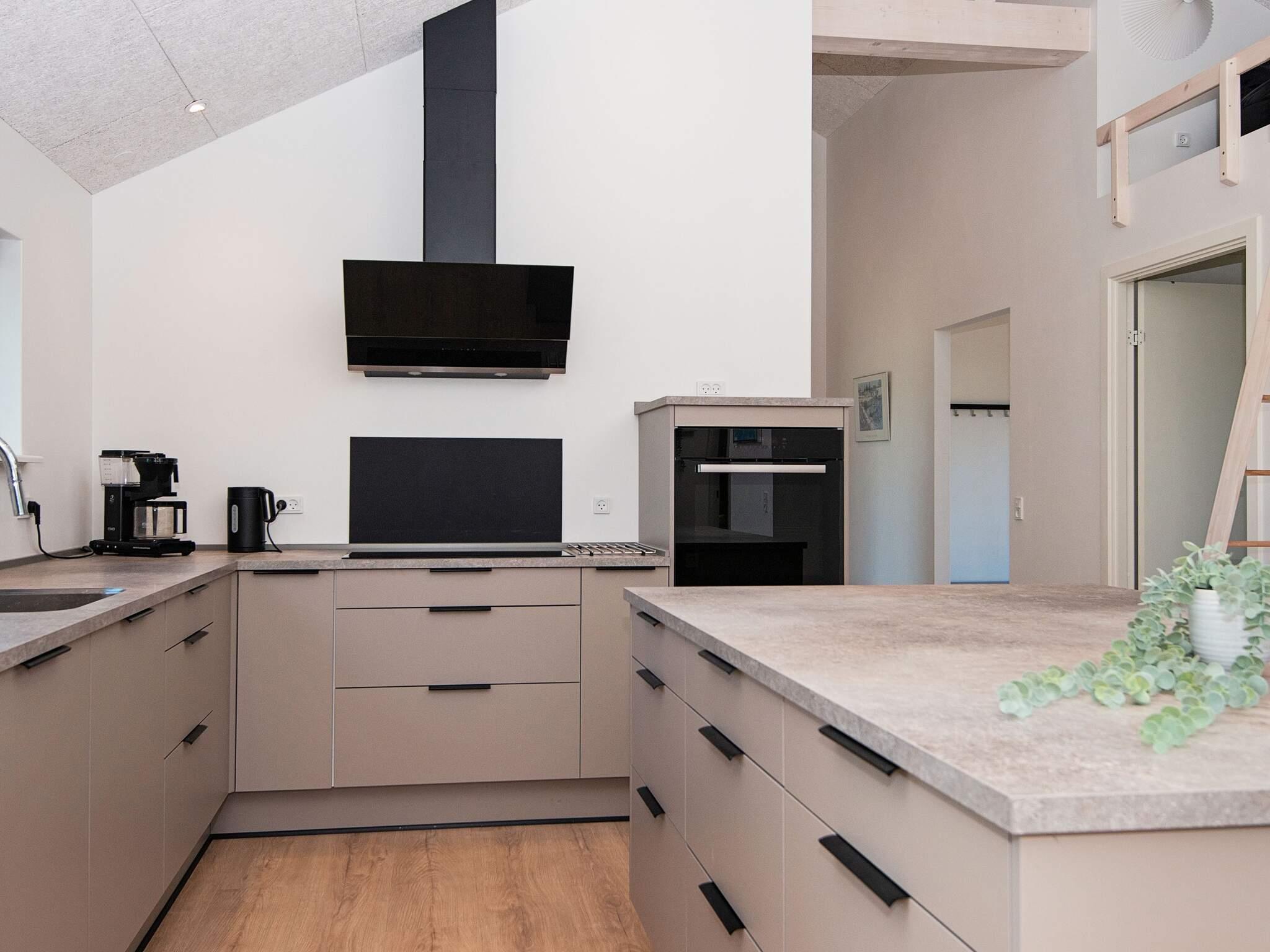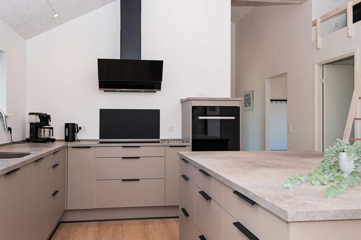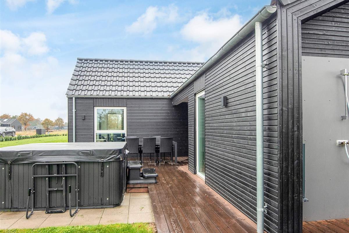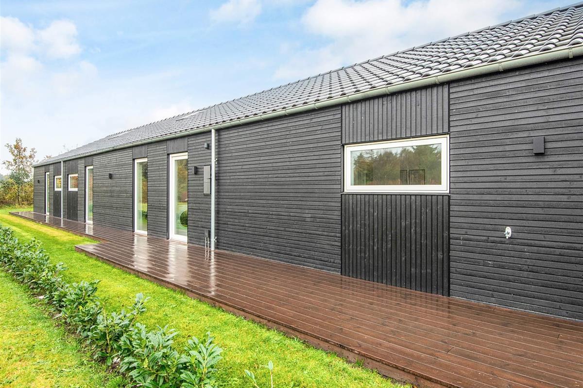 Bei Kvie Sø finden Sie dieses von Architektenhand geschaffene Ferienhaus mit Whirlpool im Außenbereich und viel Platz für 10 Personen in den Schlafzimmern sowie für 2 weitere Personen oben auf dem Hems.