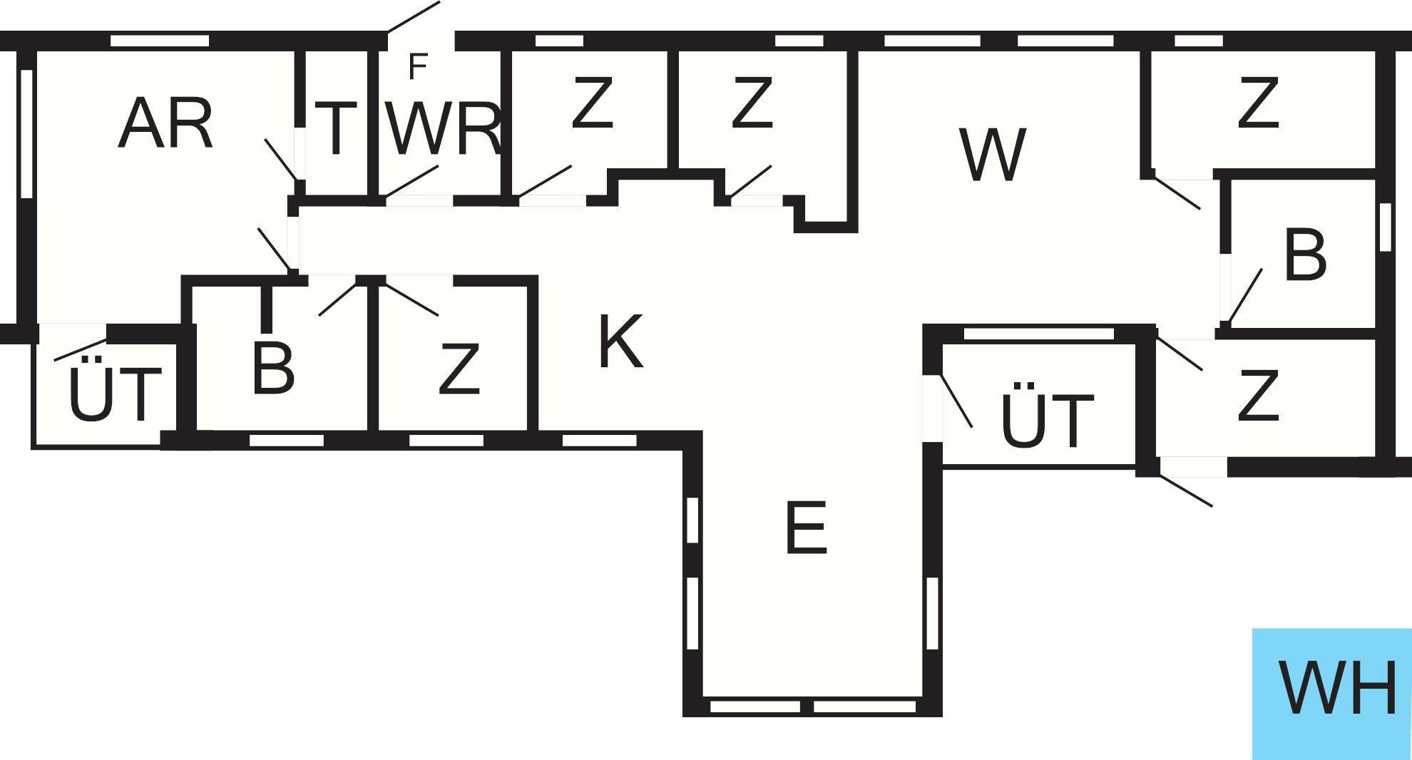 Bad: WC, Waschb., Dusche, Fußbodenheiz.
