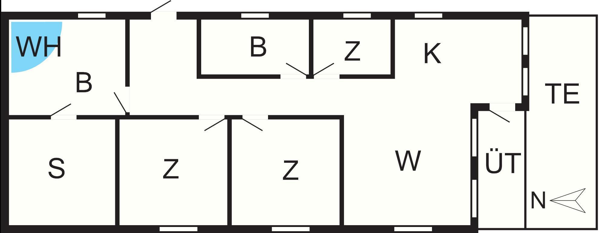 Bad: Waschm., WC, Waschb., Dusche, Fußbodenheiz.
