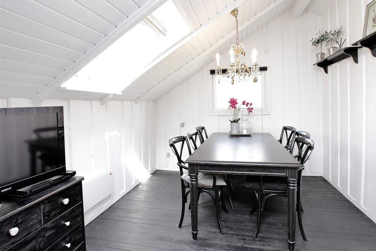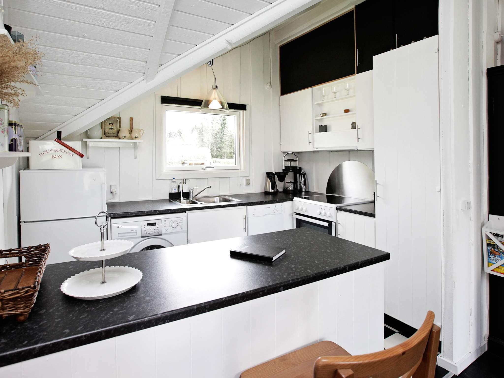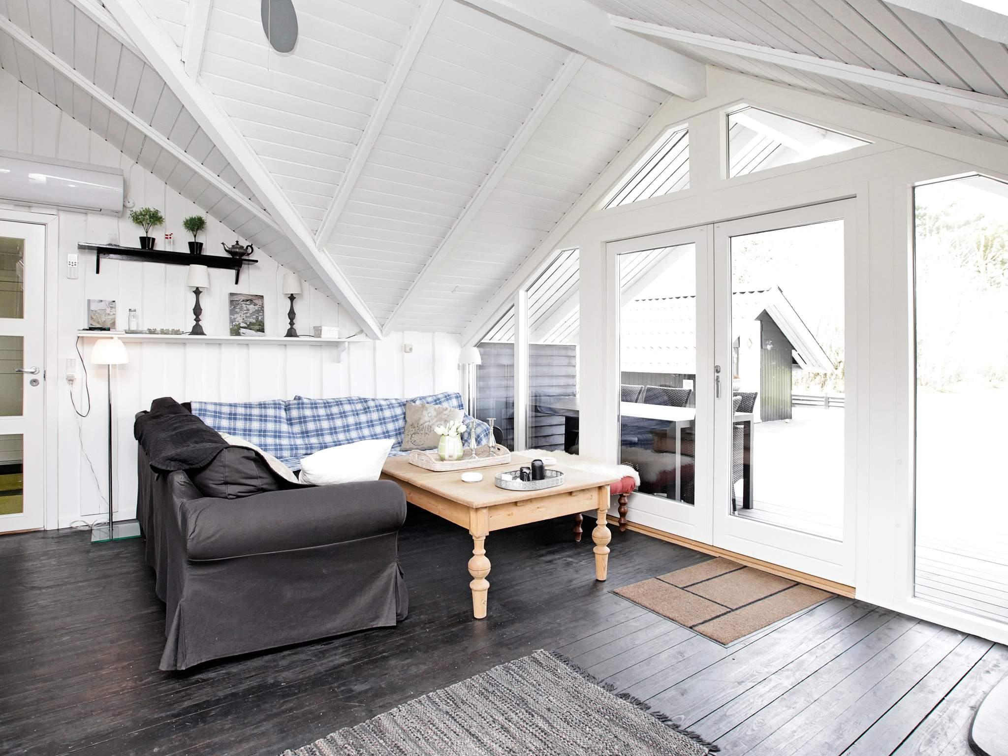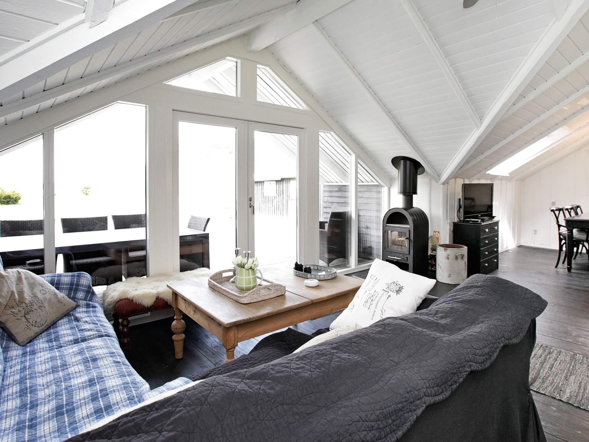 Das Ferienhaus ist hell und wohnlich eingerichtet. Es hat einen offenen Küchen-/Wohnbereich mit Ess- und Sitzecke für das Familienleben sowie Holzofen für kühlere Tage und Zutritt zur Terrasse. Genießen Sie dort die Mahlzeiten des Tages mit Ausblick zum Wasser.