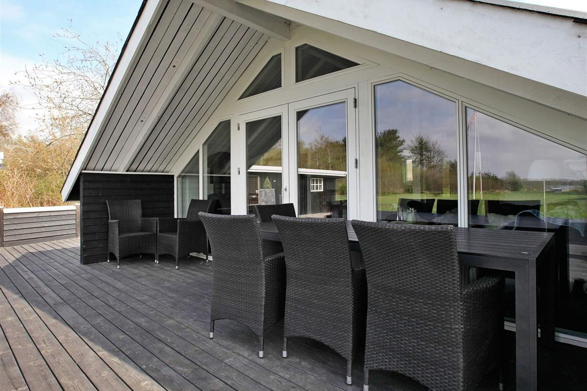 Ferienhaus in attraktiver Lage mit Seeblick. Das umliegende Ferienhausgebiet erstreckt sich bis hinunter ans nahe Seeufer. Sie können den Ausblick zum Wasser sowohl som Innen- als auch vom Außenbereich genießen.