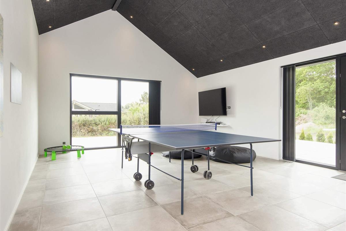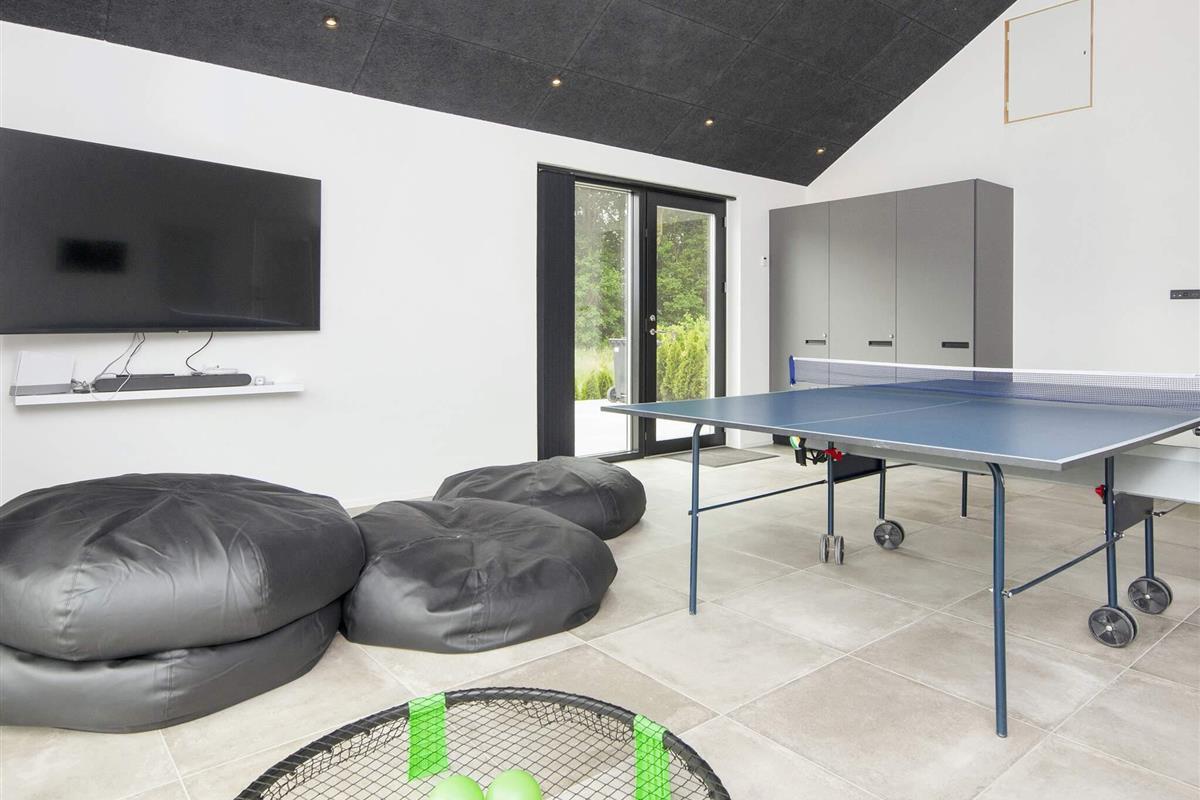 Beim Betreten werden Sie von einer großzügigen und einladenden Atmosphäre begrüßt. Der große Aktivitätsraum mit Billardtisch und Tischtennisplatte fällt sofort ins Auge – ideal für gemütliche Zusammenkünfte mit Familie und Freunden. Eine eigene Ecke mit modernem Fernseher und Spielekonsole sorgt für stundenlangen Spaß und Entspannung.