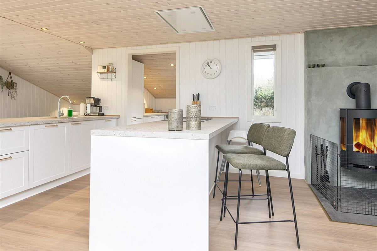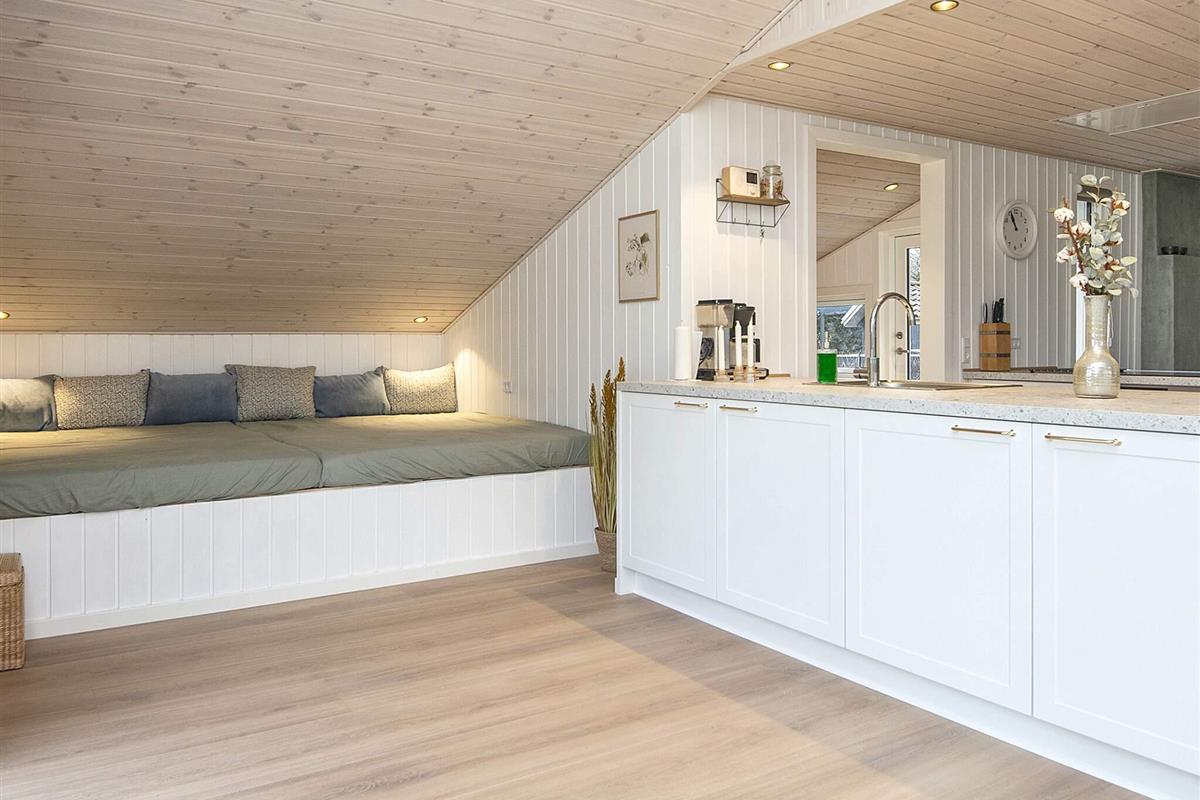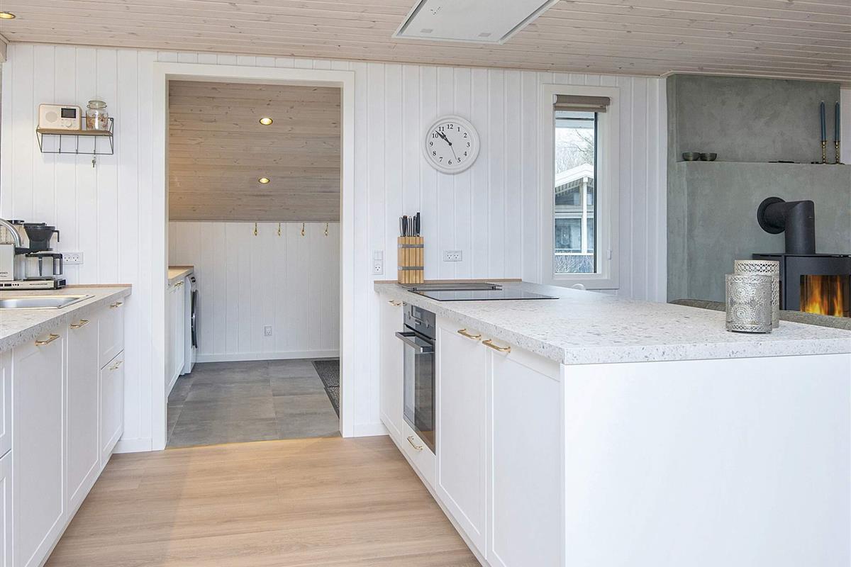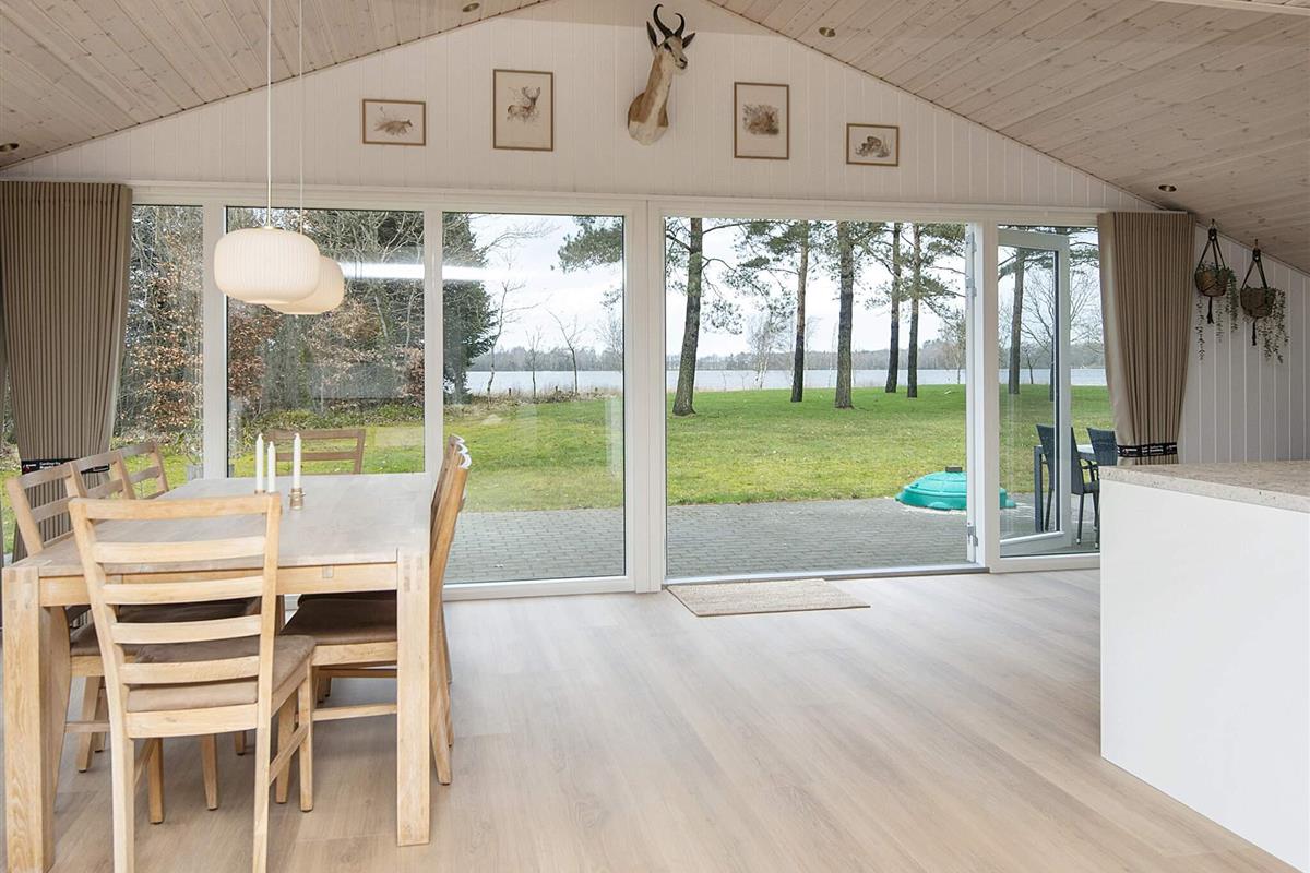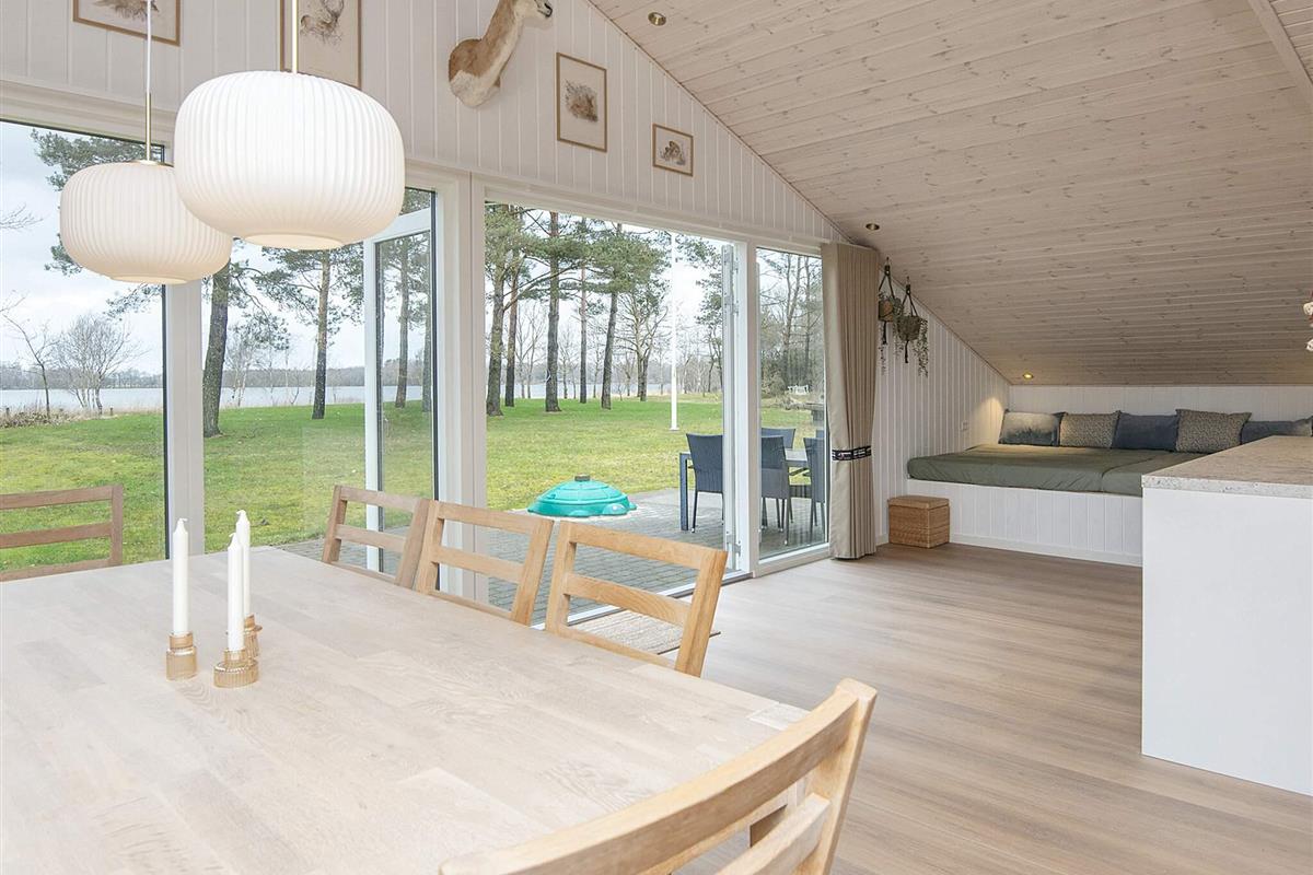 Im Inneren bietet das Haus einen großzügigen, offenen Wohn- und Essbereich, ideal für Familienleben und Zusammenkünfte. Das moderne und komfortable Interieur verbindet Funktionalität mit einer gemütlichen, einladenden Atmosphäre und sorgt für einen angenehmen Aufenthalt für alle Gäste. Große Fenster bieten einen ungestörten Blick auf den See, füllen das Haus mit natürlichem Licht und verbinden Sie mit der ruhigen Umgebung.