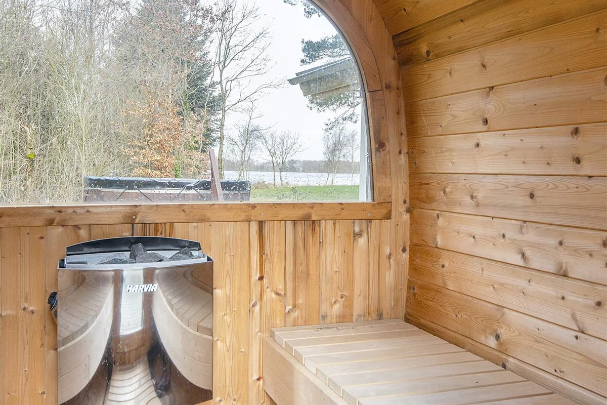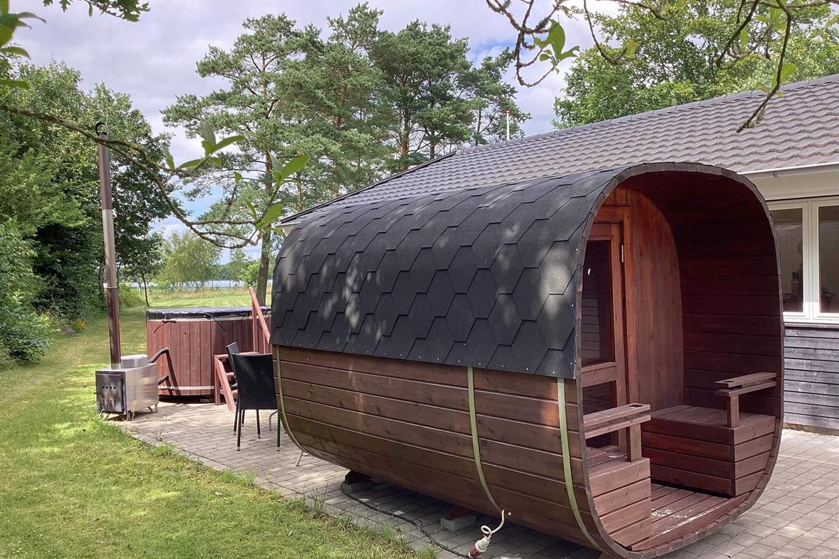 Ein großes Grundstück, das sich fast bis zum Wasser erstreckt. Das Anwesen ist zum Entspannen und Genießen der umliegenden Natur konzipiert und verfügt über einen Außenwhirlpool und eine Sauna, in denen Sie Körper und Geist entspannen und regenerieren können.