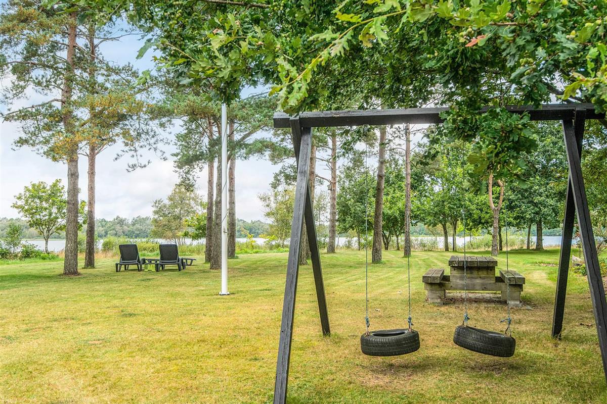 Der weitläufige Garten bietet viel Platz für Kinder zum freien und sicheren Spielen mit Schaukeln und Freiflächen zum Toben, Spielen und für Spaß im Freien. Eine geräumige Terrasse lädt zu sonnigen Stunden und atemberaubenden Sonnenuntergängen über dem See ein und ist der perfekte Ort für den Morgenkaffee oder die abendliche Entspannung.