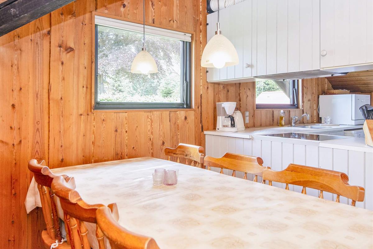 Nur etwa 200 m vom See Kvie Sø entfernt finden Sie dieses traditionelle Ferienhaus mit separatem Annex. Im Ferienhaus sind Waschmaschine, Spülmaschine, Holzofen, WLAN und TV vorhanden. Das Haus ist gut möbliert und vom Wohnraum mit den großen Fenstern aus gelangen Sie auf die Süd-Terrasse. Die Küche und der Essbereich sind offen im Wohnraum integriert.