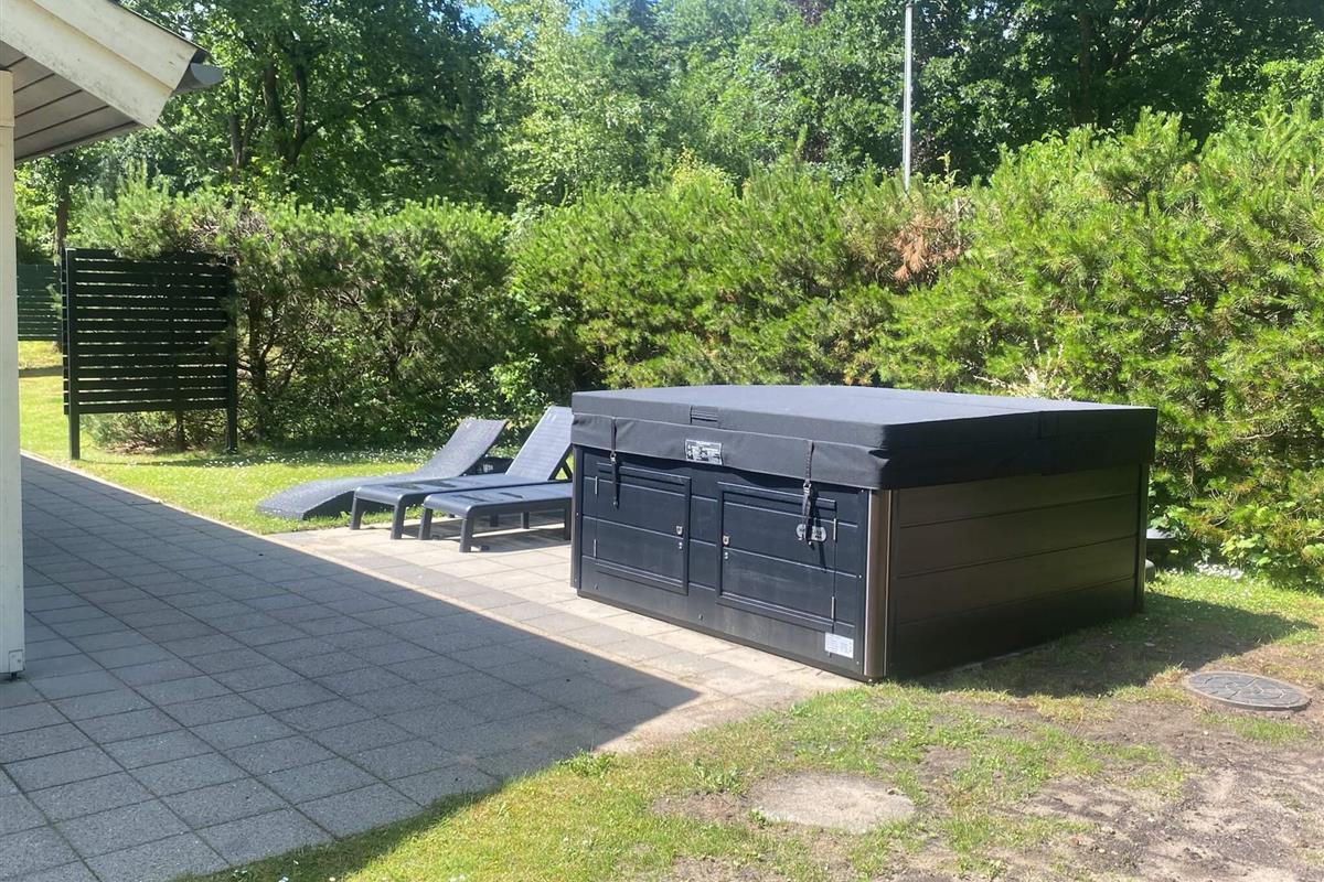Ferienhaus mit Whirlpool innen und außen sowie Sauna innen! Liegt nahe am See Kvie Sø und ist für bis zu 6 Personen geeignet.