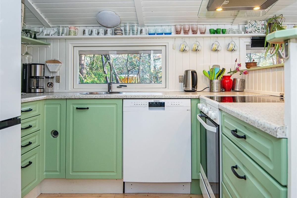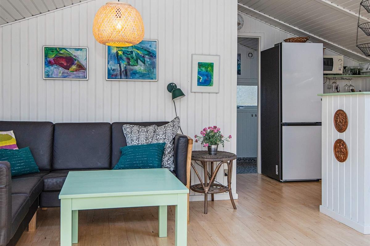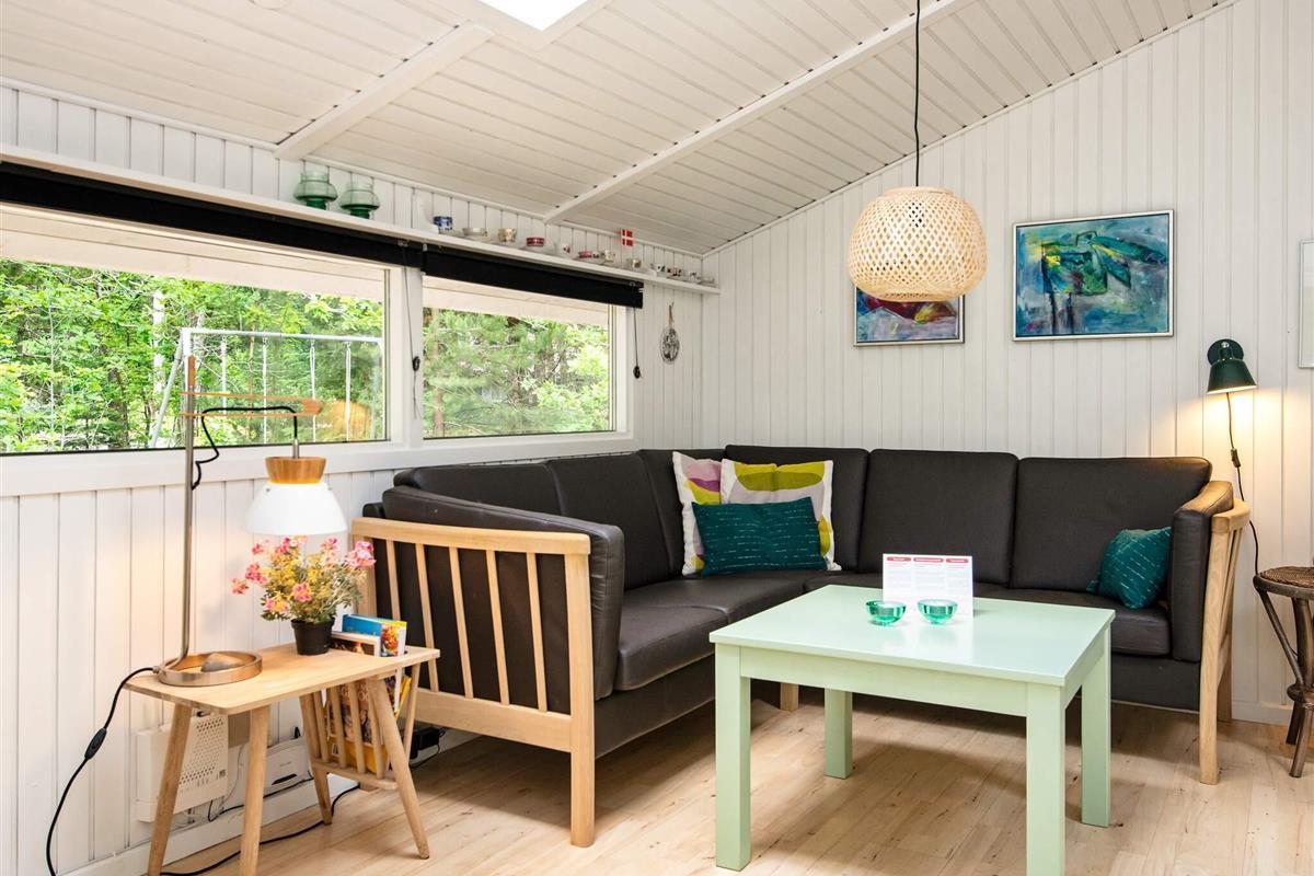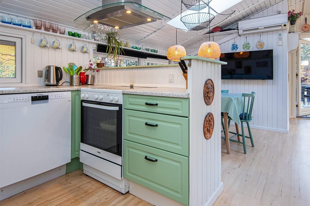 Das Ferienhaus ist mit einer energieeffizienten Wärmepumpe, einem Holzofen, einer Waschmaschine, einem Trockner, kostenfreiem WLAN und einem TV mit dänischen und deutschen Kanälen ausgestattet. Es hat einen offenen Küchen-/Wohnbereich für das Familienleben, mit einem Holzofen für kühlere Abende. Neben dem Badezimmer gibt es noch zwei Schlafzimmer, von denen eines mit einem Doppelbett, während das andere mit einem Einzelbett und einem Etagenbett eingerichtet ist.
