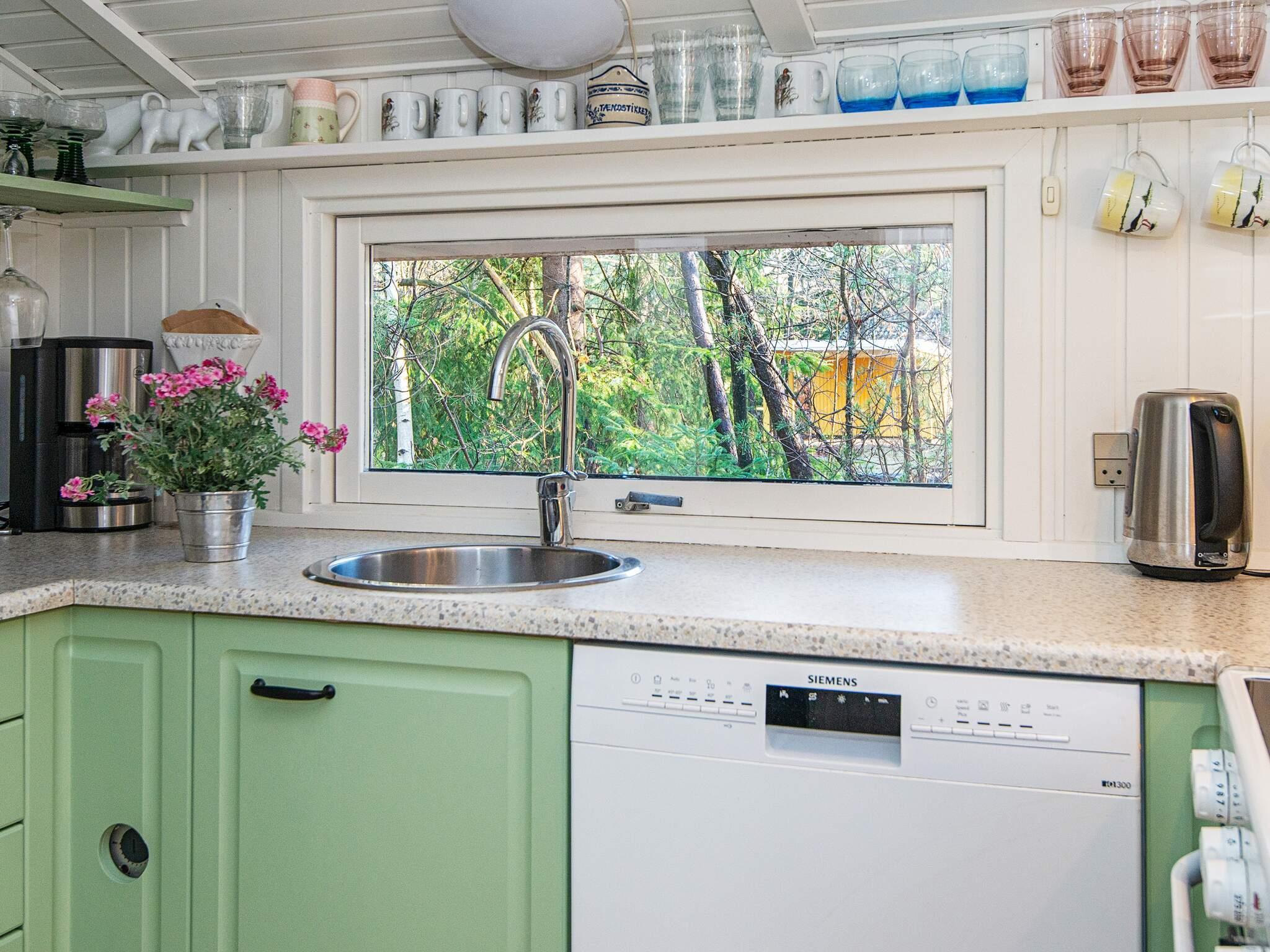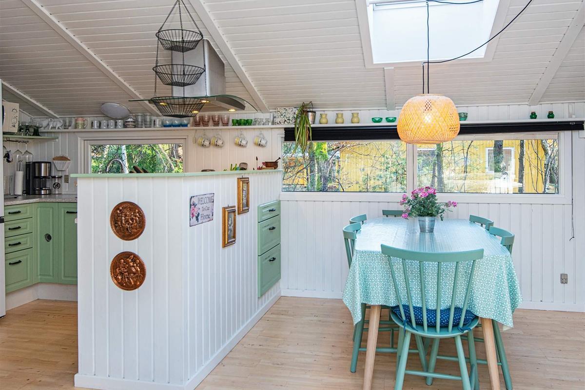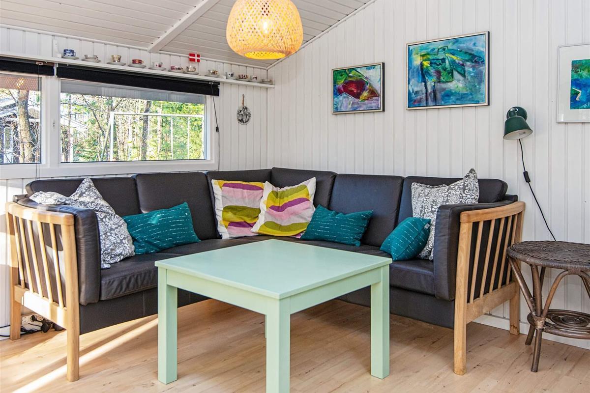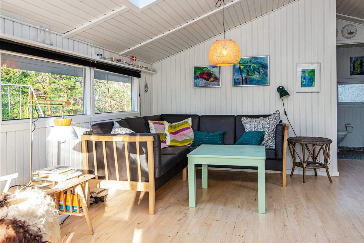 Dieses gut ausgestattete Ferienhaus liegt schön geschützt im Grünen, ganz am Ende einer ruhigen Sackgasse und zugleich nur etwa 75 m vom Seeufer am Kvie Sø.