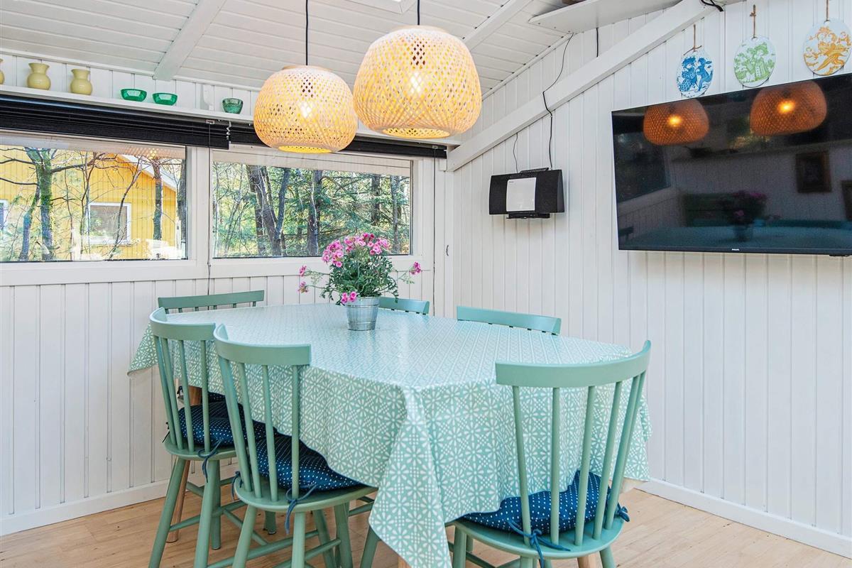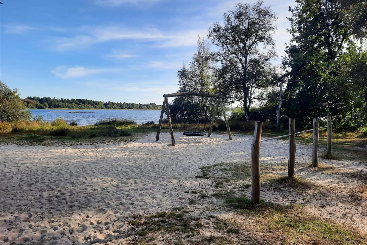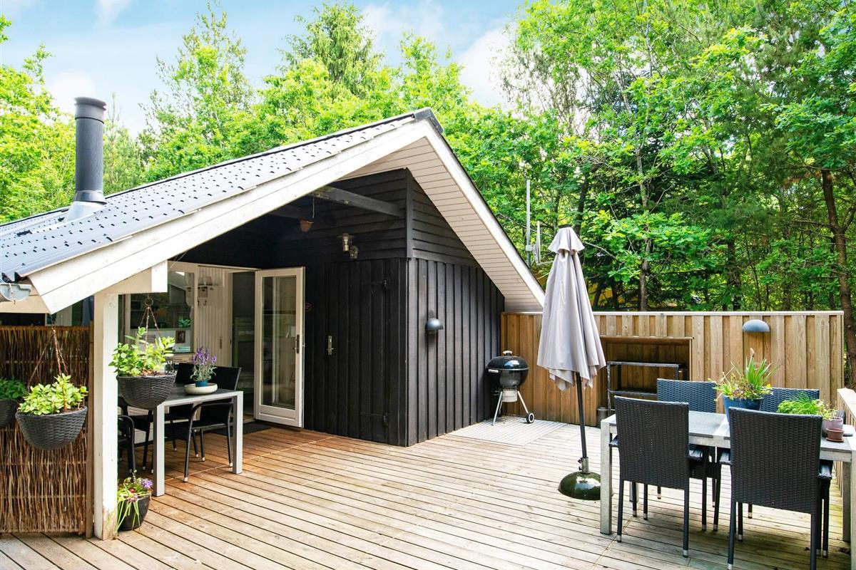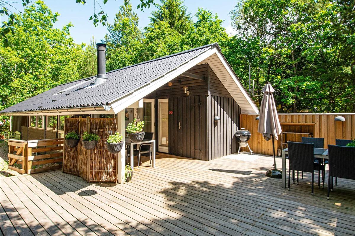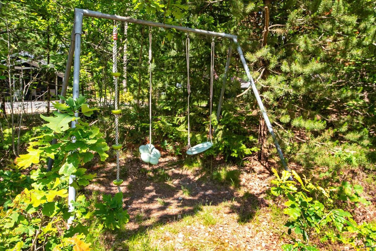 Und: Terrasse, überd. Terrasse, E-Heiz., Luft-Luft-Wärmepumpe, Spielgeräte, Grill, Naturgrundst. m. Bäumen 1100 m2, gemütliche Möblierung, Ferienhausgebiet, Nichtraucherhaus