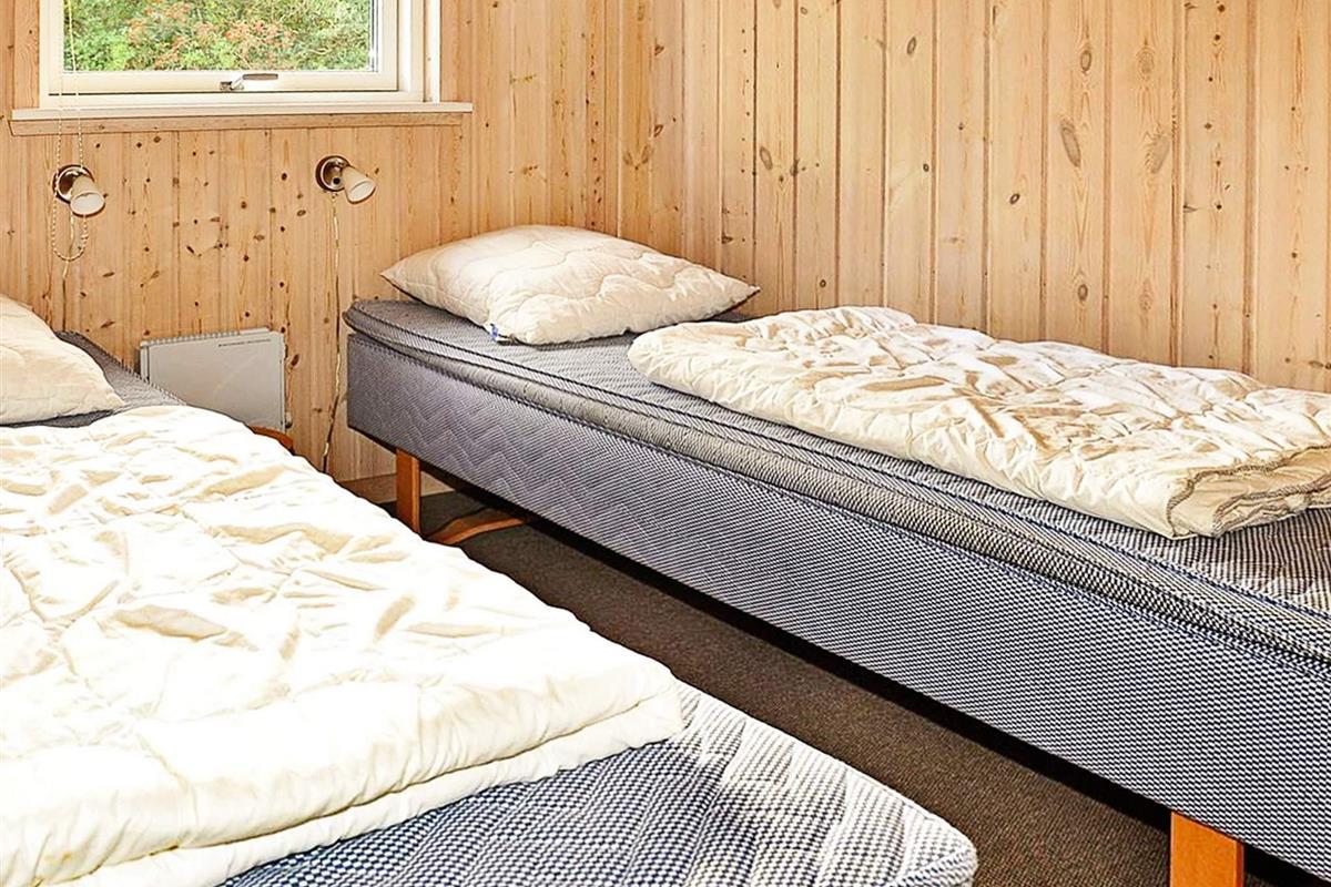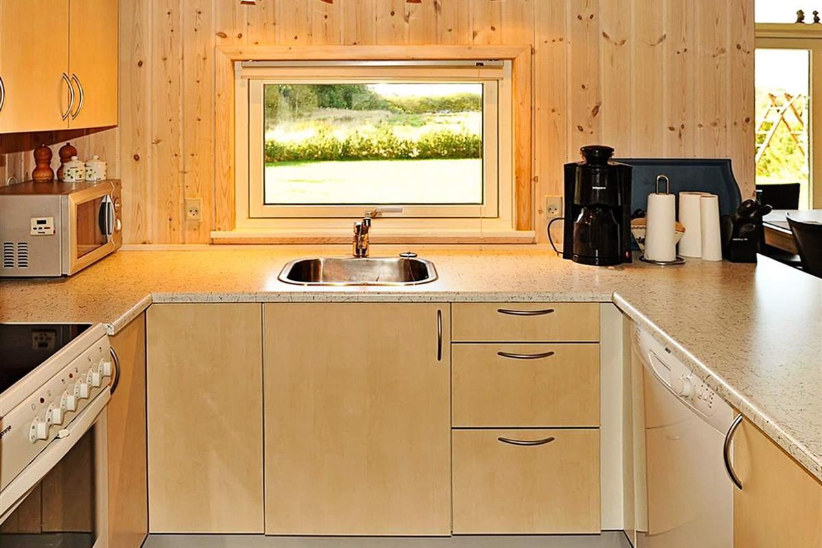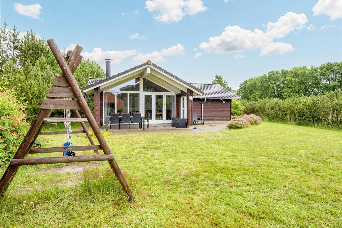 Gepflegtes und ansprechendes Ferienhaus in der Nähe von Kvie Sø. Das Haus verfügt u.a. über einen praktischen Hauswirtschaftsraum, eine gut ausgestattete Küche, sowie Bad mit Dusche. Im Wohnraum kann man die Aussicht zum Naturgrundstück genießen, während der Kaminofen wohlige Wärme verströmt.