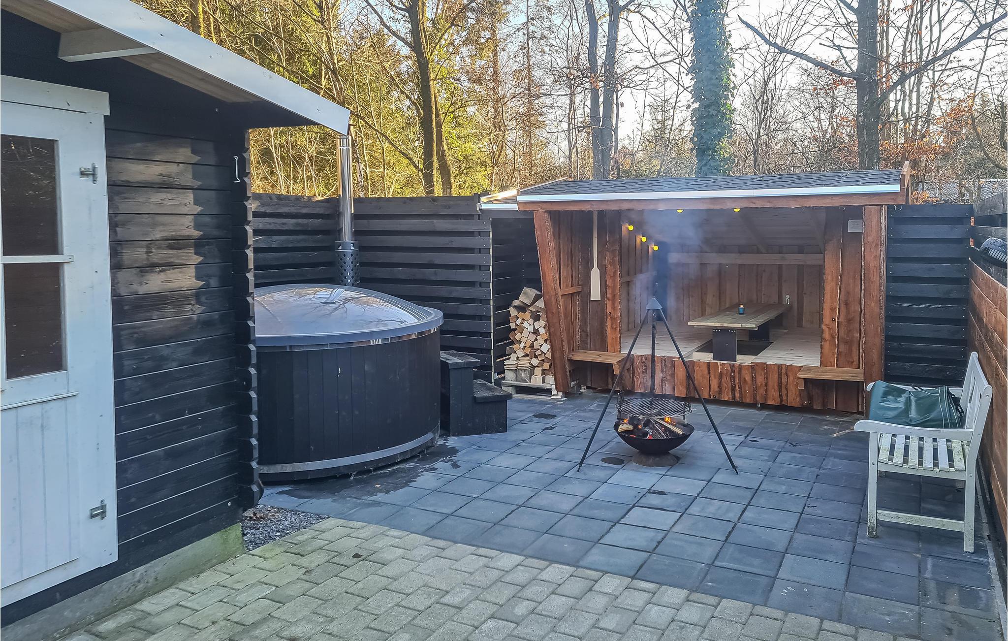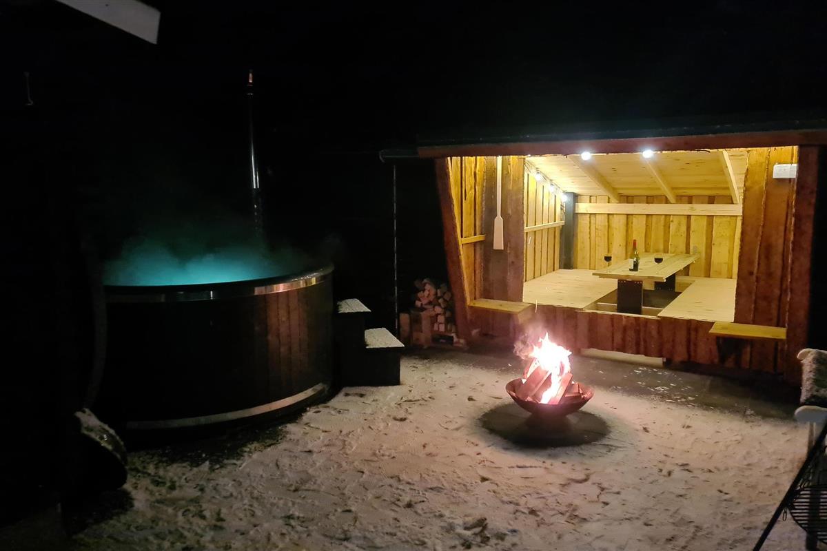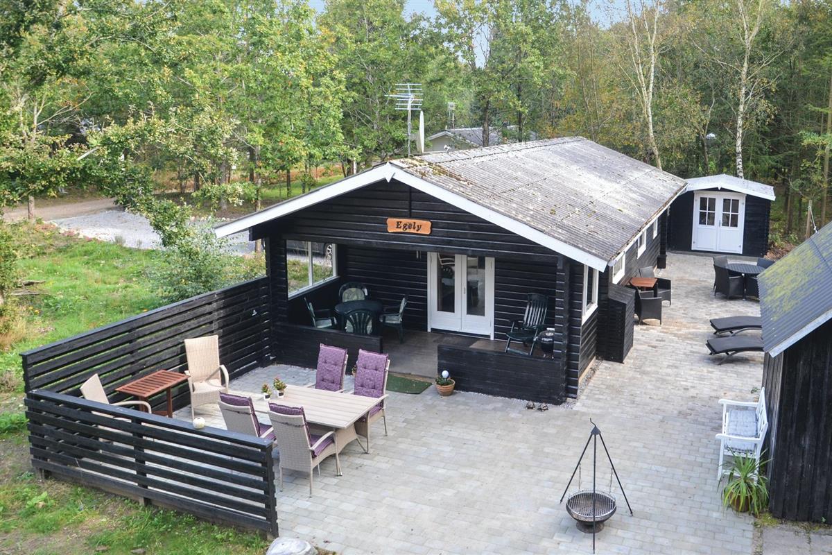 Gerenoveerd vakantiehuis bij Kvie-meer met overdekt terras en buitenspa voor rust en ontspanning.