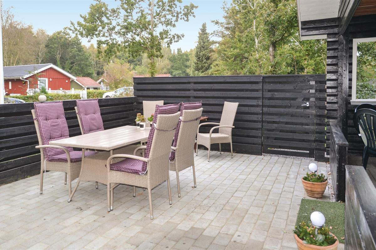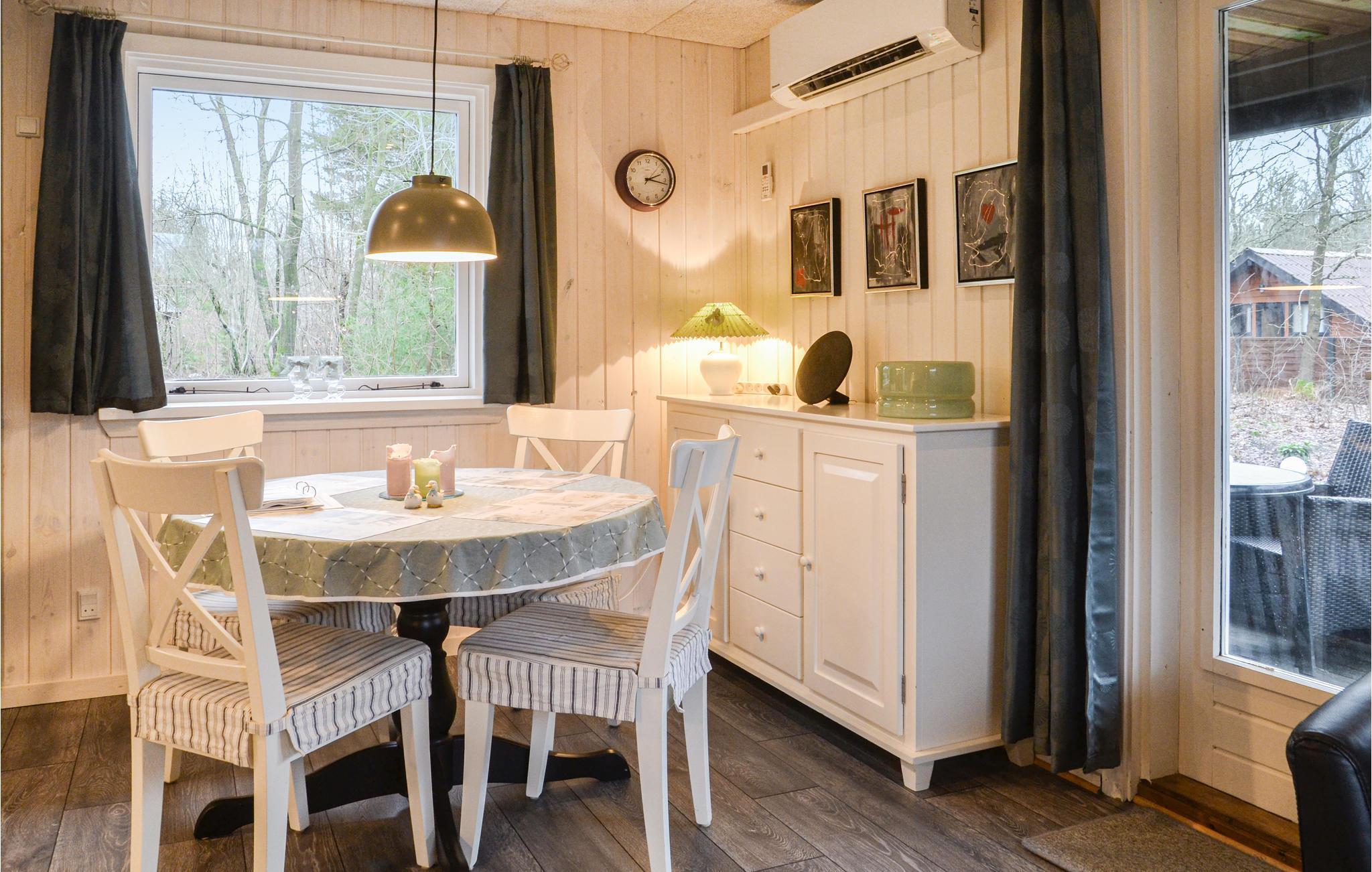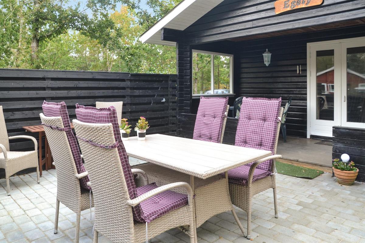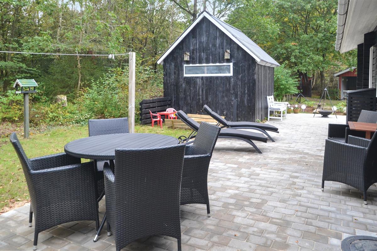 Gerenoveerd vakantiehuis bij Kvie-meer met overdekt terras en buitenspa voor rust en ontspanning.