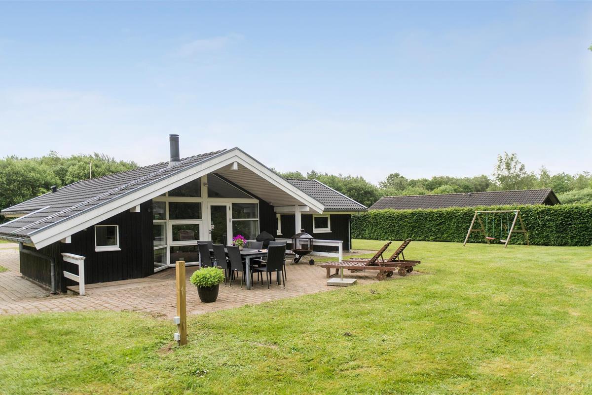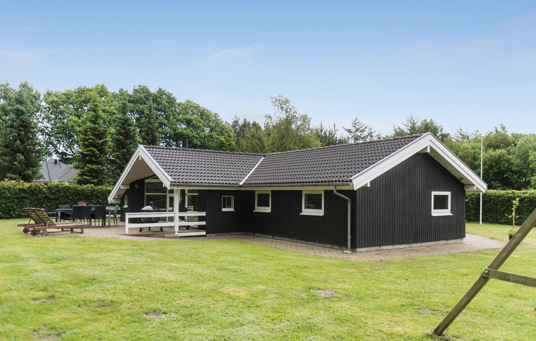 Ontspan in dit ruime vakantiehuis met sauna, bubbelbad en grote tuin nabij het Kvie Sø meer.