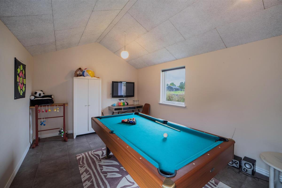 Stap binnen in de lichte, open woonkamer met grote panoramische ramen die uitkijken over het groen. Ontspan op de comfortabele banken terwijl het natuurlijke licht de kamer overspoelt. Maak gebruik van de moderne keuken met veel werkruimte en bereid samen heerlijke maaltijden. Kom gezellig samen rond de lange eettafel die plaats biedt aan iedereen. Gebruik de aparte activiteitenruimte met pooltafel om samen spelletjes te spelen en ontspan daarna in de sauna of drijf in het warme water van de whirlpool binnen.
