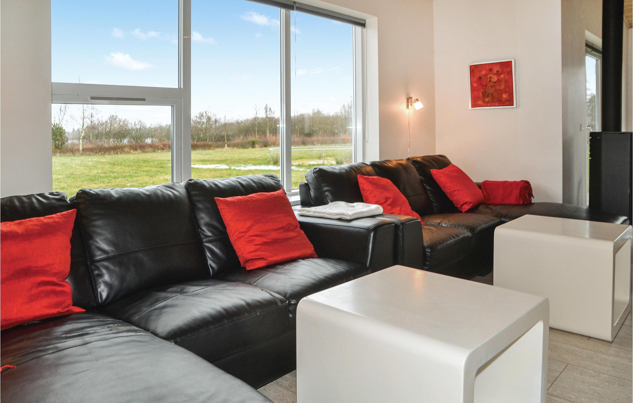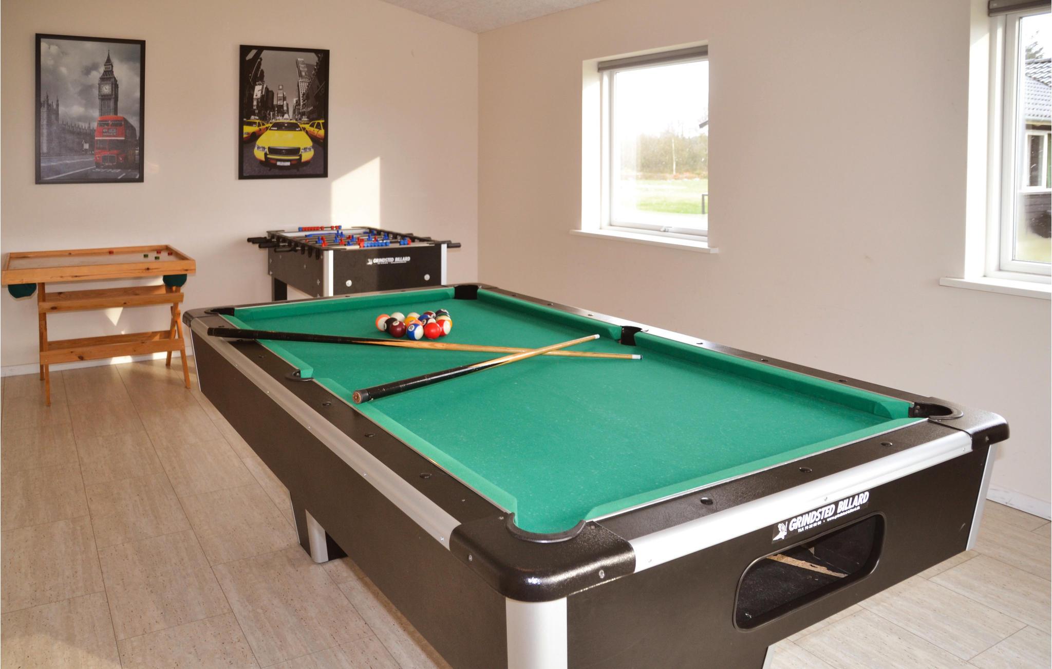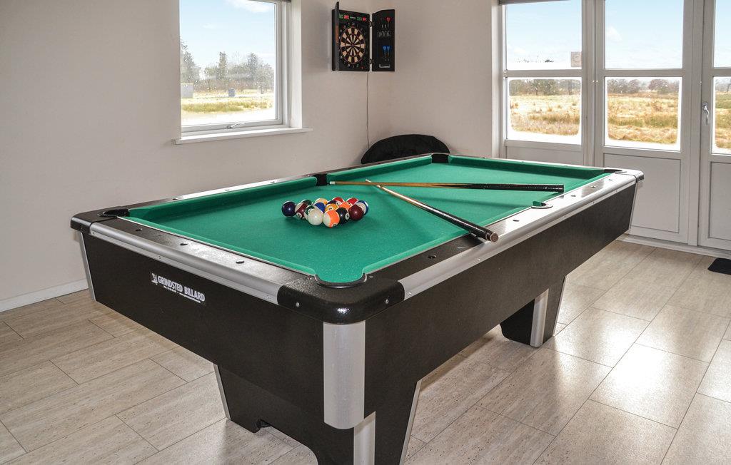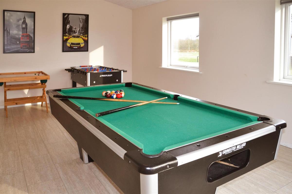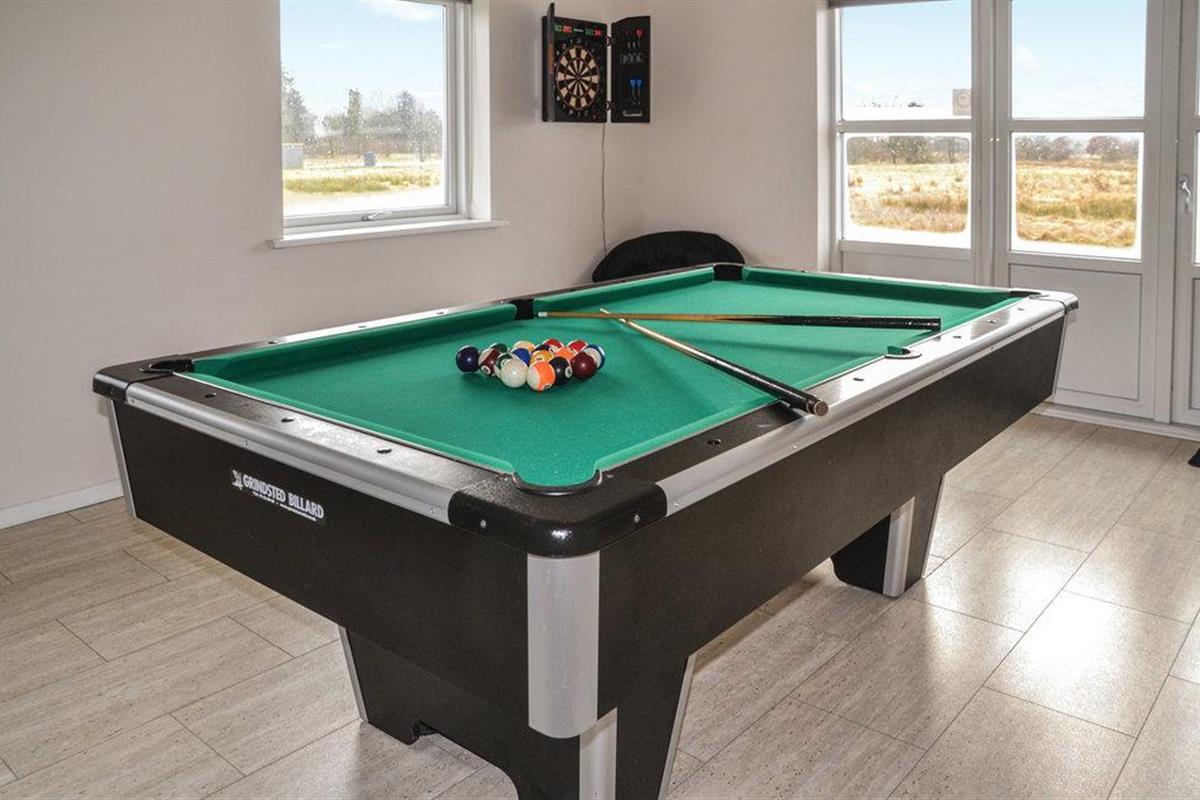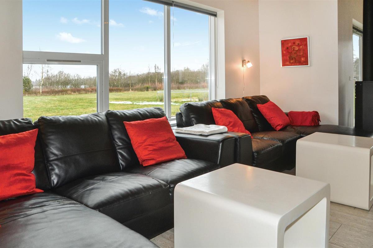 Chique vakantiehuis met uitzicht op Kvie Sø. Het bevat alles wat uw hartje begeert. Het huis is stijlvol ingericht in bijpassende kleuren en met comfortabele meubels. Zwemmen in het verfrissende zwembad, gevolgd door een massage in de jacuzzi en daarna een ontspannende saunasessie. Een deel van het zwembad is ingericht als kinderbad. In de activiteitenruimte kunt u urenlang biljarten. Bobsleeën, darten of tafeltennis vliegen u om de oren. Het huis heeft ruime slaapkamers, evenals een open plattegrond en 2 chique badkamers met vloerverwarming. De goed uitgeruste keuken is verbonden met het eetgedeelte en de woonkamer met een gezellige open haard. De grote ramen laten veel licht binnen. Er zijn veel wandelpaden rond het meer in de omgeving. Verder ligt Kvie Sø niet ver van Billund. Hier kunt u Legoland en Lalandia bezoeken en de luchthaven is ook heel dichtbij. Een bezoek aan Givskud Zoo is een hit bij de kinderen!