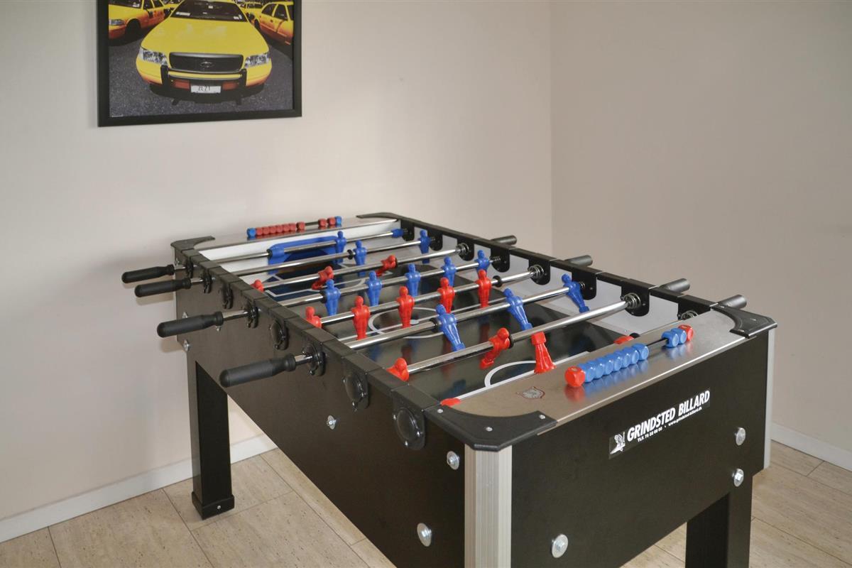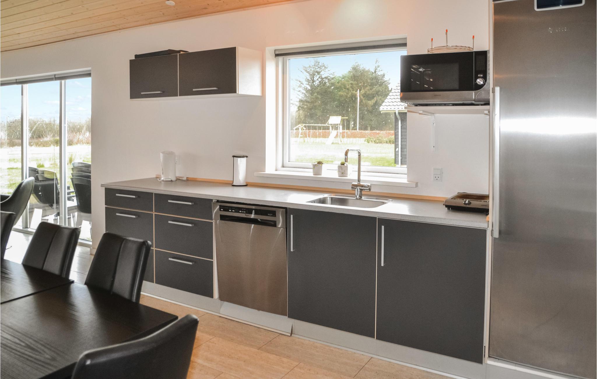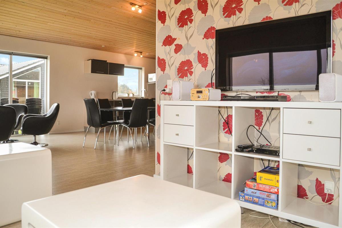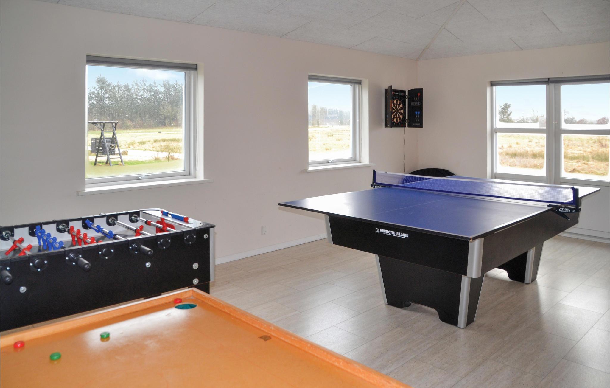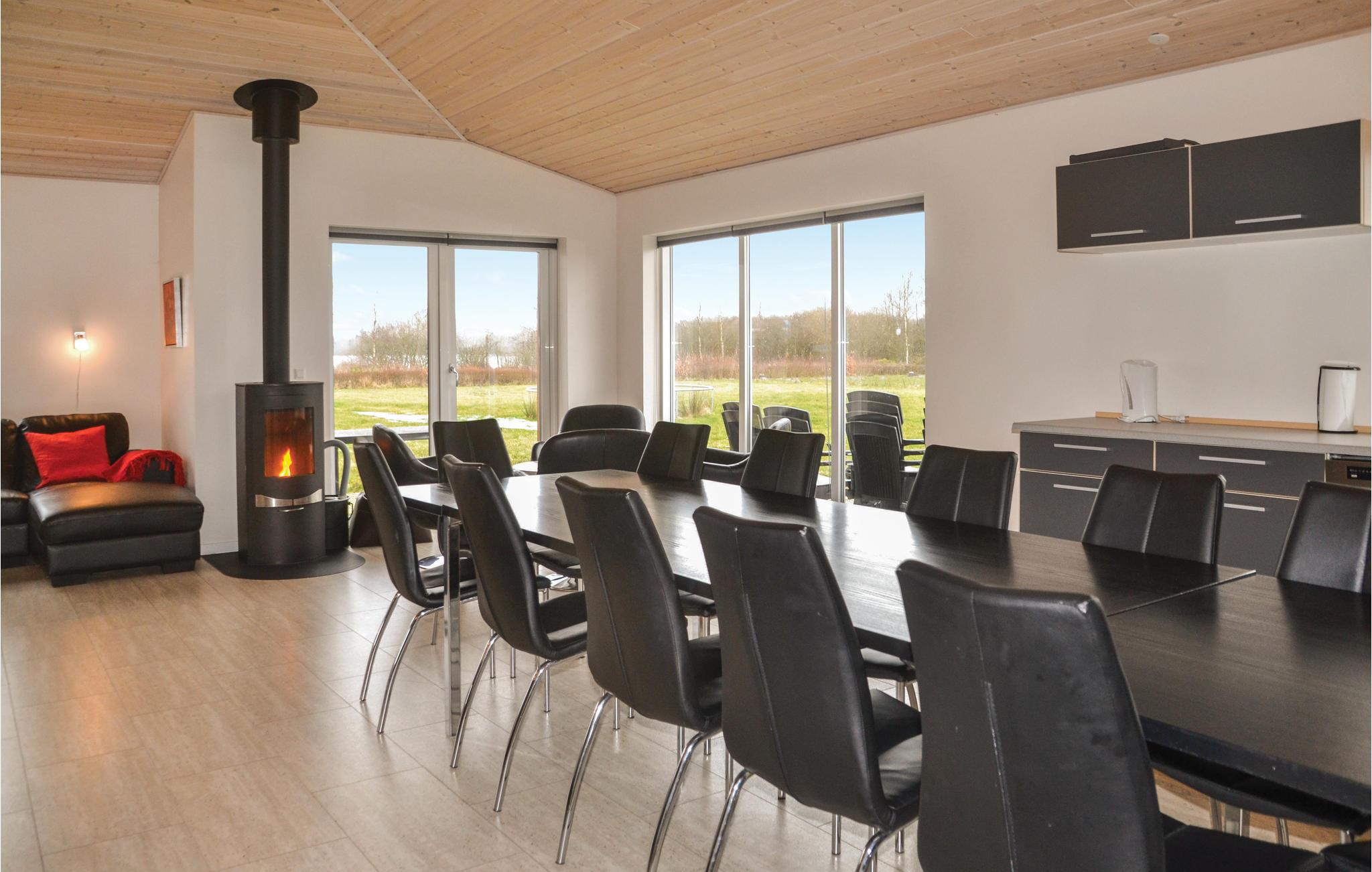 Chique vakantiehuis met uitzicht op Kvie Sø. Het bevat alles wat uw hartje begeert. Het huis is stijlvol ingericht in bijpassende kleuren en met comfortabele meubels. Zwemmen in het verfrissende zwembad, gevolgd door een massage in de jacuzzi en daarna een ontspannende saunasessie. Een deel van het zwembad is ingericht als kinderbad. In de activiteitenruimte kunt u urenlang biljarten. Bobsleeën, darten of tafeltennis vliegen u om de oren. Het huis heeft ruime slaapkamers, evenals een open plattegrond en 2 chique badkamers met vloerverwarming. De goed uitgeruste keuken is verbonden met het eetgedeelte en de woonkamer met een gezellige open haard. De grote ramen laten veel licht binnen. Er zijn veel wandelpaden rond het meer in de omgeving. Verder ligt Kvie Sø niet ver van Billund. Hier kunt u Legoland en Lalandia bezoeken en de luchthaven is ook heel dichtbij. Een bezoek aan Givskud Zoo is een hit bij de kinderen!