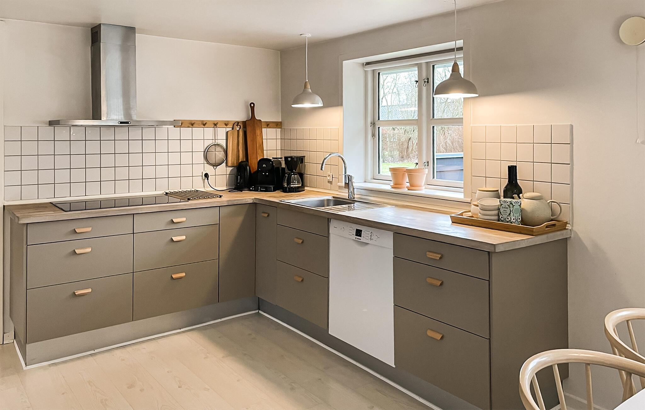 Gezellig vakantiehuis met sauna, whirlpool en ruime keuken nabij Kvie Sø, ideaal voor ontspanning en natuur.