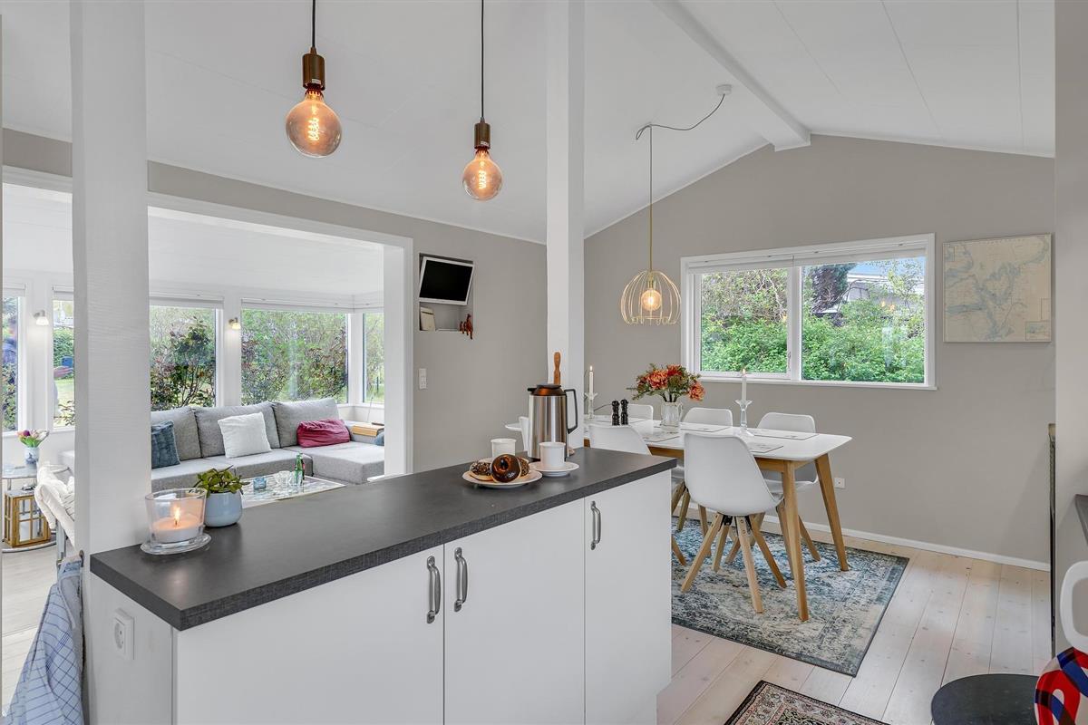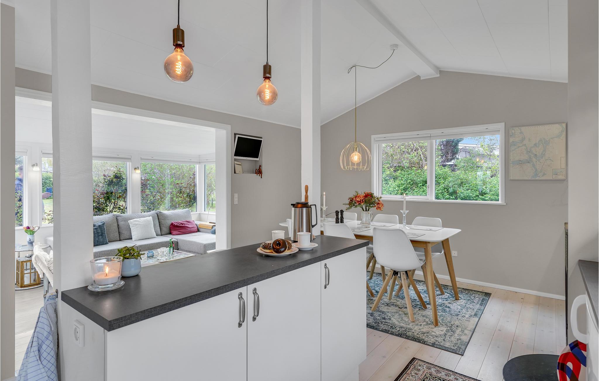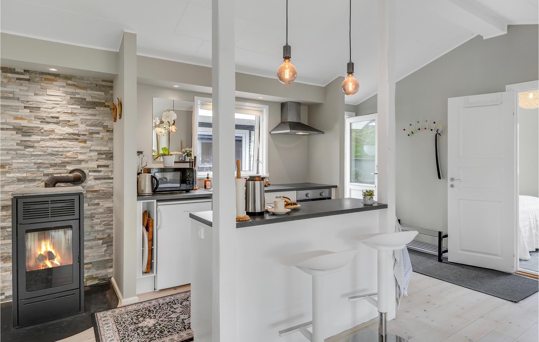 Licht, modern ingericht vakantiehuis met pelletkachel en eigen tuin, op slechts 600 m van het fjord.