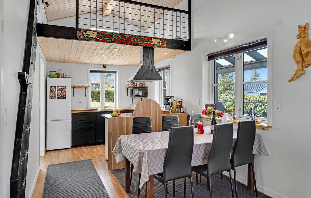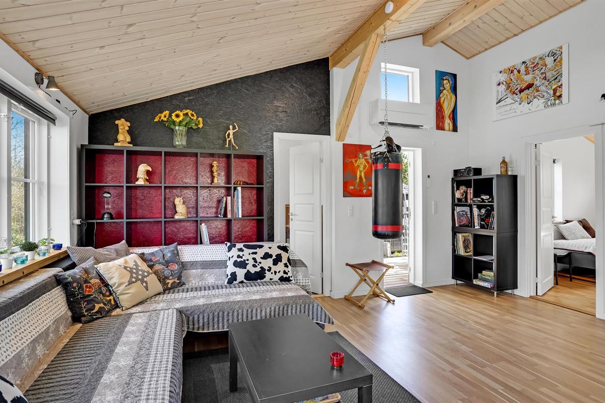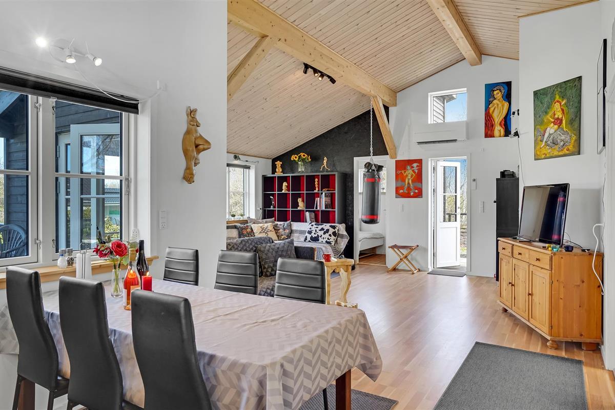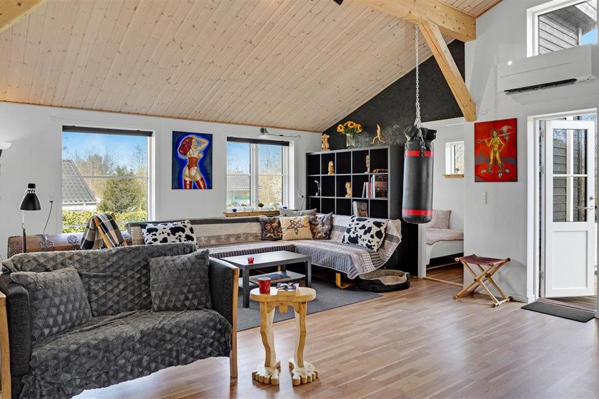 Verheug u op een decoratief en stijlvol ingericht vakantiehuis in Denemarken, dat u ongelooflijk veel ruimte biedt om u helemaal thuis te voelen. Aan de ene kant kunt u het uzelf comfortabel maken op een van de stoelen in de woonkamerhoek, terwijl uw geliefden het ontbijt bereiden in het keukengedeelte, waarvan u samen kunt genieten op het open terras of aan de eettafel. De privétuin nodigt ook uit tot activiteiten tijdens de vakantie, zoals barbecues of voor de jonge gasten, die zich op elke vierkante meter ongestoord kunnen uitleven.