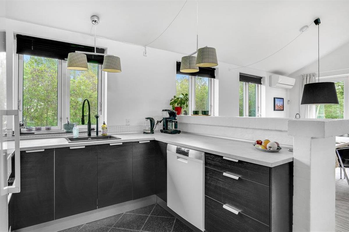 Ruim en milieuvriendelijk vakantiehuis met moderne keuken en omheinde tuin in Kyndeløse Sydmark, Denemarken.
