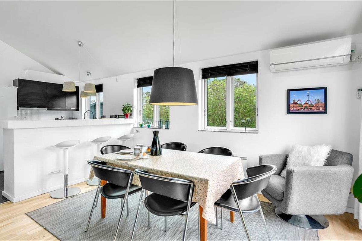 In Kyndeløse Sydmark wacht dit goed ingerichte en ruime vakantiehuis op u, met een mooie en moderne keuken die verbonden is met de woonkamer. Het ligt op een omheind perceel en grenst aan een open gebied waar u heerlijk kunt wandelen. In de tuin nodigen een schommel en een voetbaldoel en een mooi terras u uit om vele uren buiten door te brengen. Het huis wordt voorzien van milieuvriendelijke windmolenstroom en er is een laadstation voor elektrische auto's op de parkeerplaats. Interessante plaatsen om te bezoeken zijn onder andere de kathedraal van Roskilde.