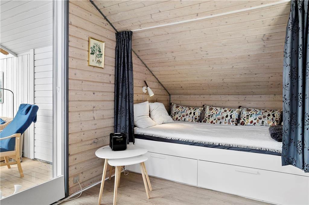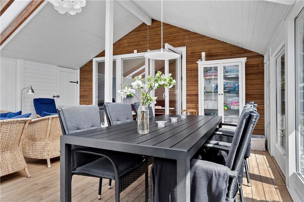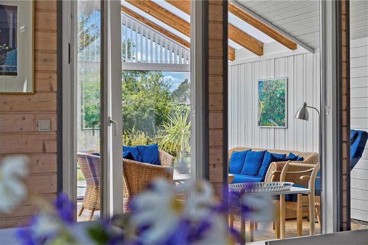 Willkommen in diesem bezaubernden Ferienhaus, das aufgrund seiner komfortablen Ausstattung und der gemütlichen Atmosphäre einen perfekten Rahmen für erholsame, stimmungsvolle Urlaubstage im Familienkreis bietet. Die Schlafplätze verteilen sich auf zwei Zimmer und auf eine gemütliche Schlafnische im Wohnraum. Die offene Küche bietet gute Möglichkeiten zum gemeinsamen Kochen und für Gespräche mit den Lieben, die am vor der Küche platzierten Esstisch sitzen. Im Wohnraum sorgt ein schöner Kaminofen an kühlen Abenden für Gemütlichkeit. Auf der Polstersitzgarnitur entspannen Sie sich nach einem lagen, aktiven Urlaubstag. Vom Wohnraum treten Sie in den hellen, gemütlichen Wintergarten, in dem ein Essbereich und eine schöne Sitzecke mit Korbmöbeln zu geselligen Mahlzeiten im Sonnenlicht, zum Lesen und zu unterhaltsamen Kartenspielrunden einladen.