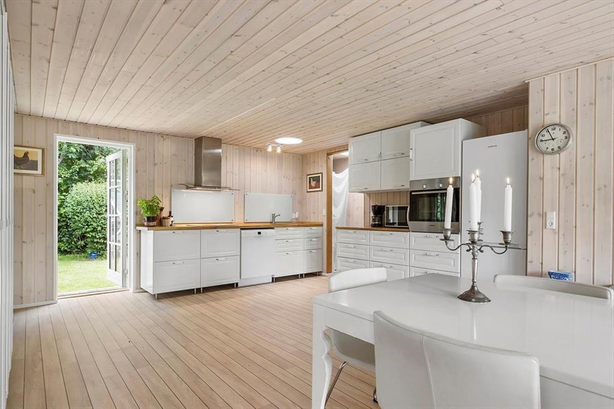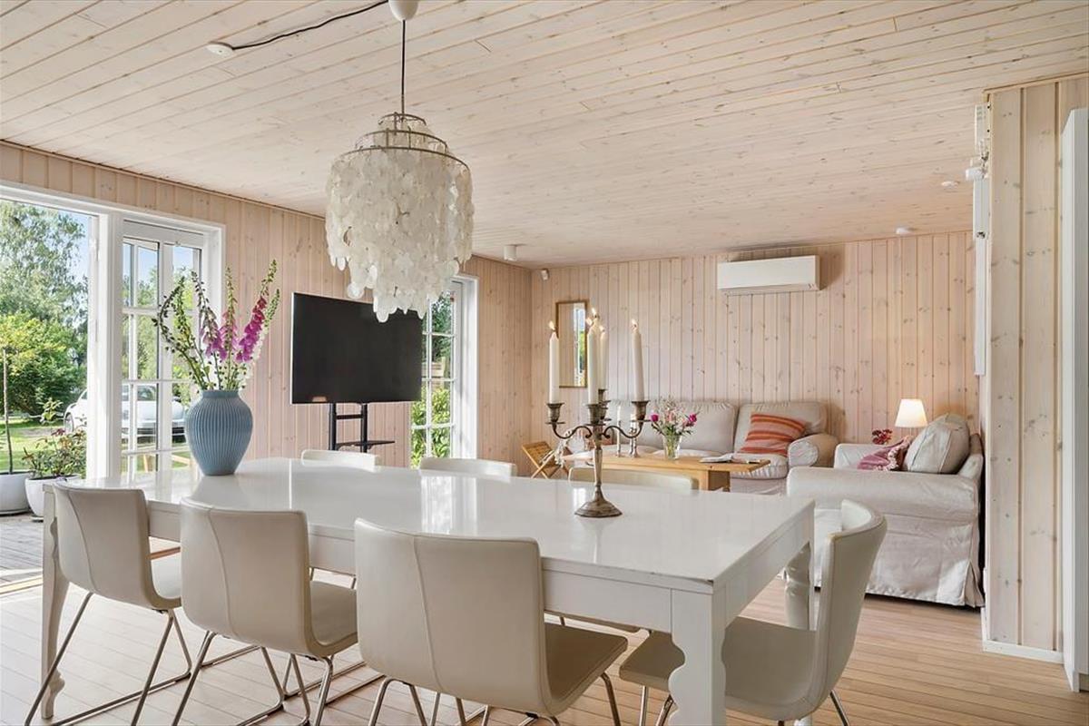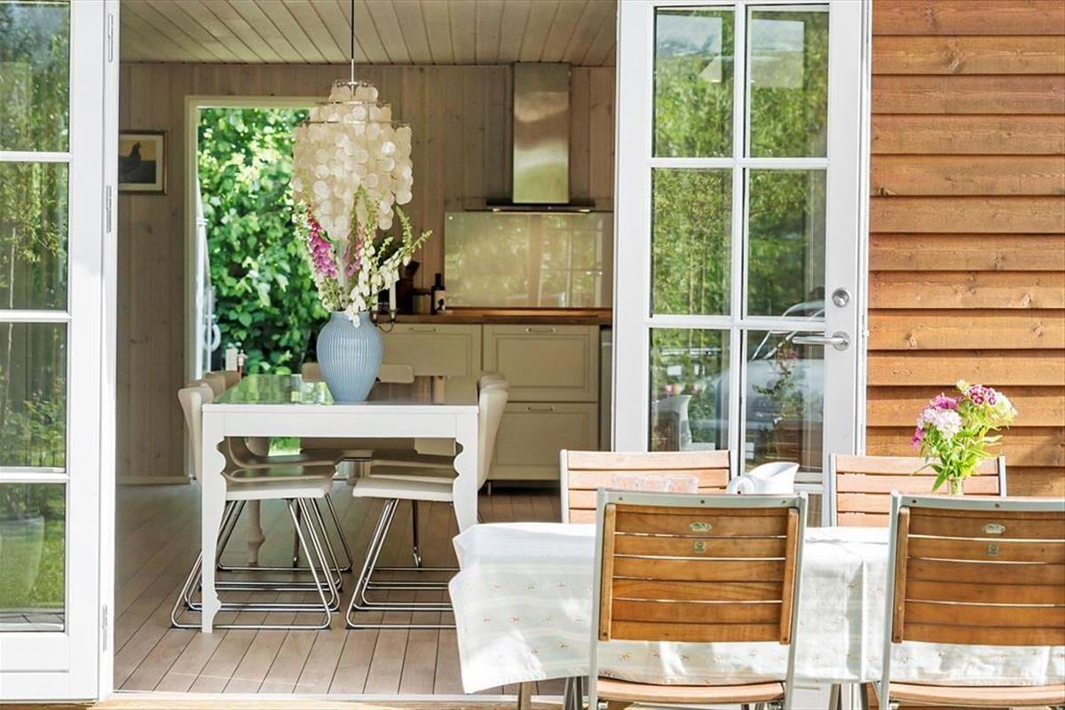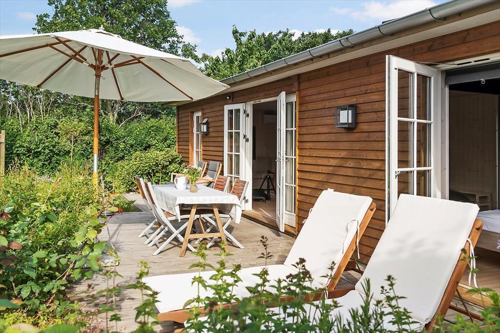 Der Stil des Ferienhauses ist charmant und romantisch. Das Haus ist sehr gut aufgeteilt und bietet viel Platz. Zwei gute, helle Schlafzimmer und ein großer offener Küchen-Wohnbereich im Zusammenhang mit dem Wohnzimmer sorgen dafür, dass ihr genug Platz habt, um zusammen zu sein. Licht strömt durch die klassischen dänischen Terrassentüren und bietet einen bezaubernden Ausblick. Mit direktem Zugang zur Terrasse vom Wohnzimmer, der Küche und dem Essbereich verschmelzen Innen- und Außenbereich nahtlos.