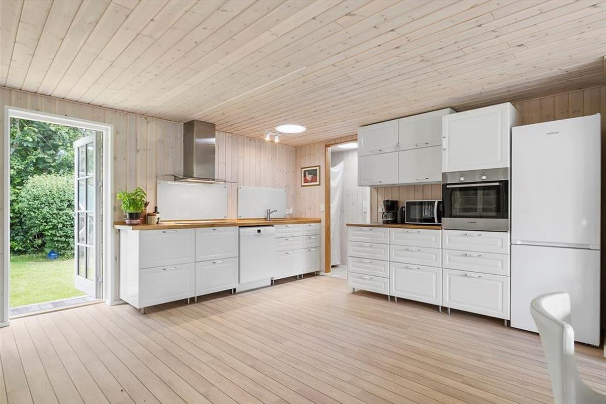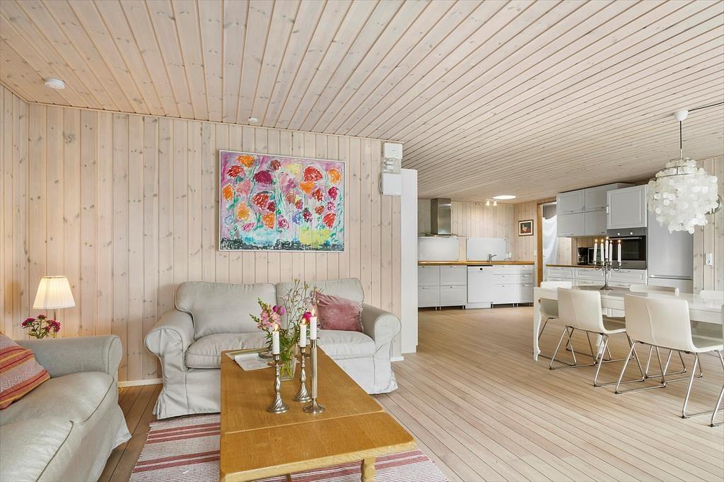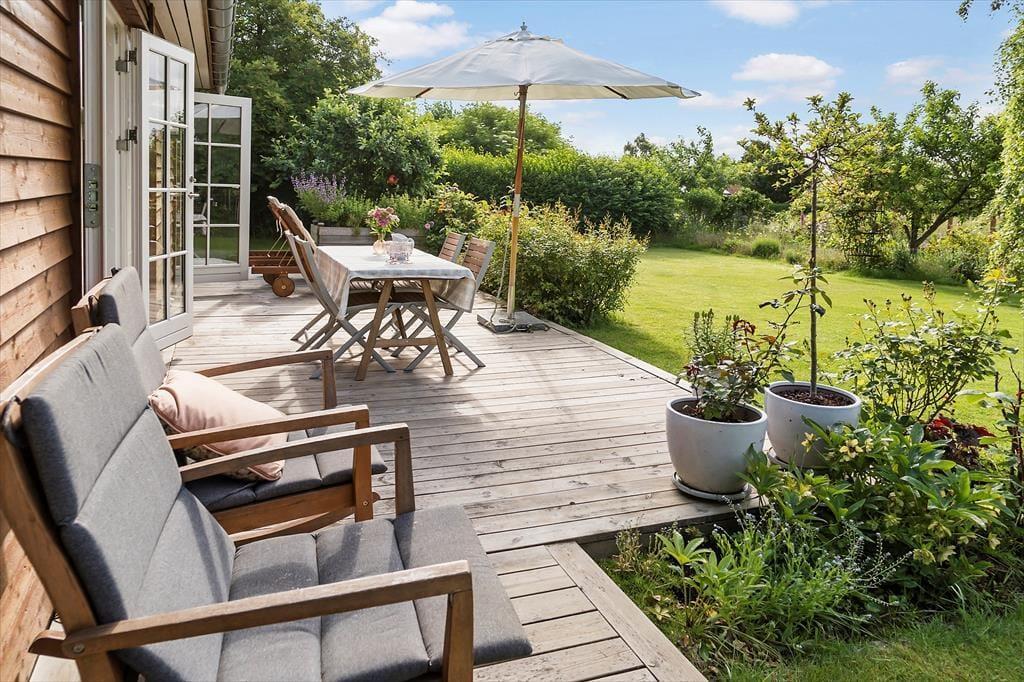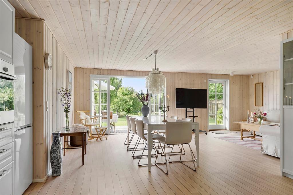 Der Stil des Ferienhauses ist charmant und romantisch. Das Haus ist sehr gut aufgeteilt und bietet viel Platz. Zwei gute, helle Schlafzimmer und ein großer offener Küchen-Wohnbereich im Zusammenhang mit dem Wohnzimmer sorgen dafür, dass ihr genug Platz habt, um zusammen zu sein. Licht strömt durch die klassischen dänischen Terrassentüren und bietet einen bezaubernden Ausblick. Mit direktem Zugang zur Terrasse vom Wohnzimmer, der Küche und dem Essbereich verschmelzen Innen- und Außenbereich nahtlos.