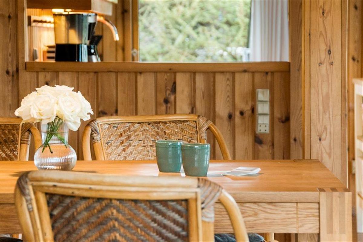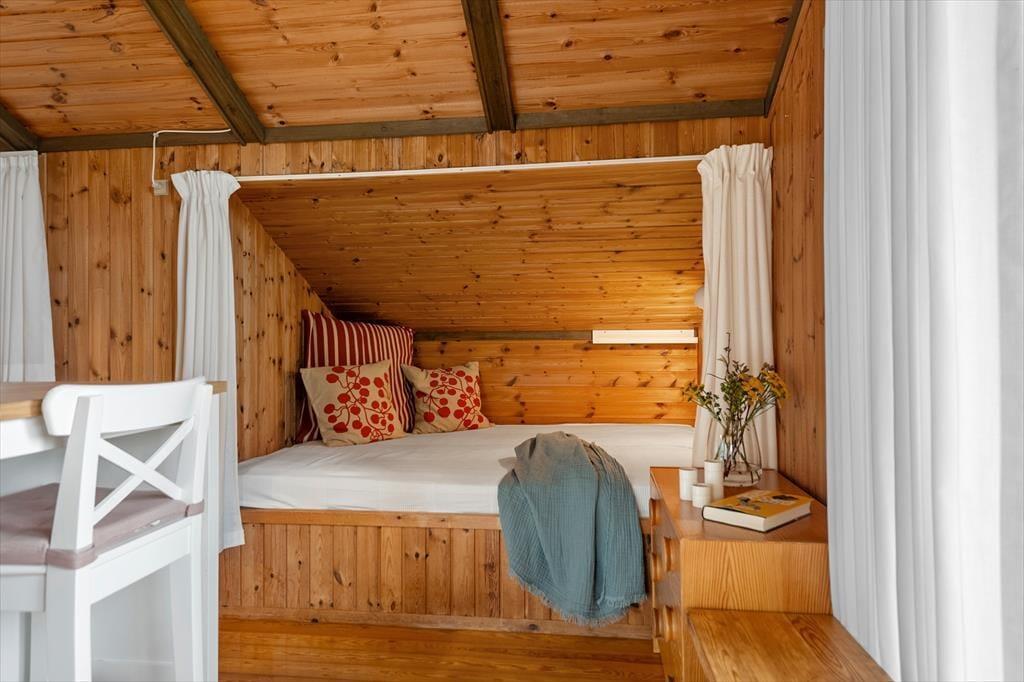 Binnen heerst een authentieke, huiselijke sfeer met klassieke vakantiewoningmaterialen en warme details. In de open leefruimte is er voldoende ruimte voor samenzijn – bijvoorbeeld bij de eettafel, met een bordspel, of in stilte. In een hoek bevindt zich een knusse alkoof die uitnodigt tot rustige momenten met een kop thee en een goed boek – of misschien een middagdutje in de schaduw.