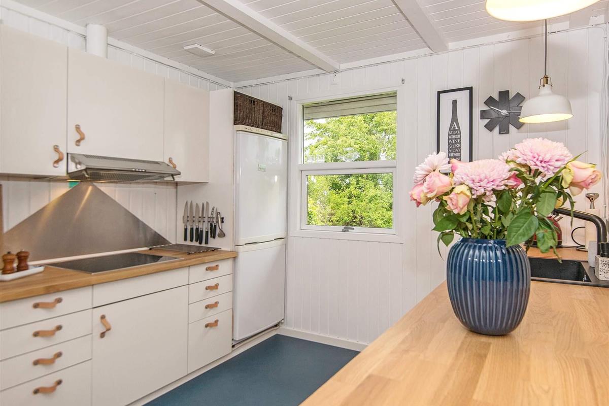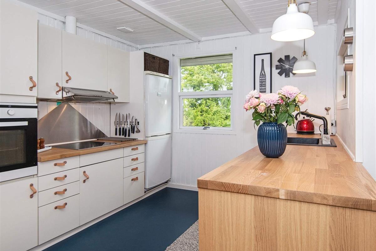 Ferienhaus auf der Landzunge Kysing Næs, südlich von Aarhus. Das Ferienhaus ist gut eingerichtet und hat einen offenen Küchen-/Wohnbereich für das Familienleben mit Ess- und Sitzecke. Es gibt zudem zwei Schlafzimmer mit Doppelbett und ein drittes Zimmer mit zwei Schlafplätzen auf einem Schlafsofa.