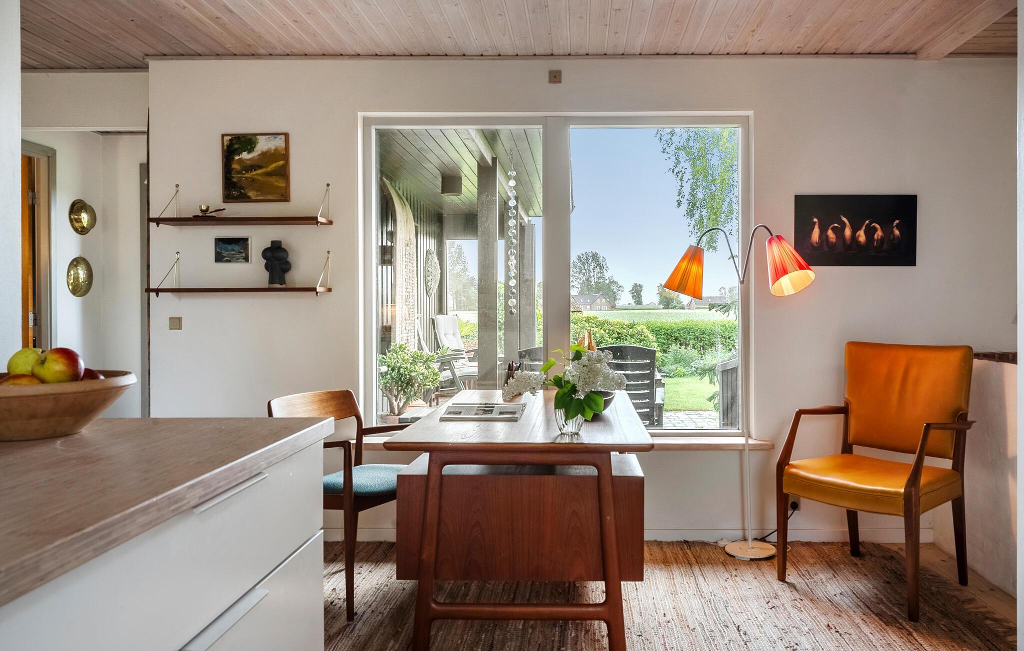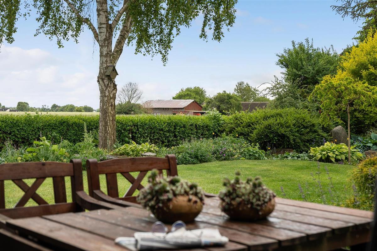 Geniet van een sfeervol vakantiehuis in Odder met serre, houtkachel en prachtig uitzicht op de tuin.