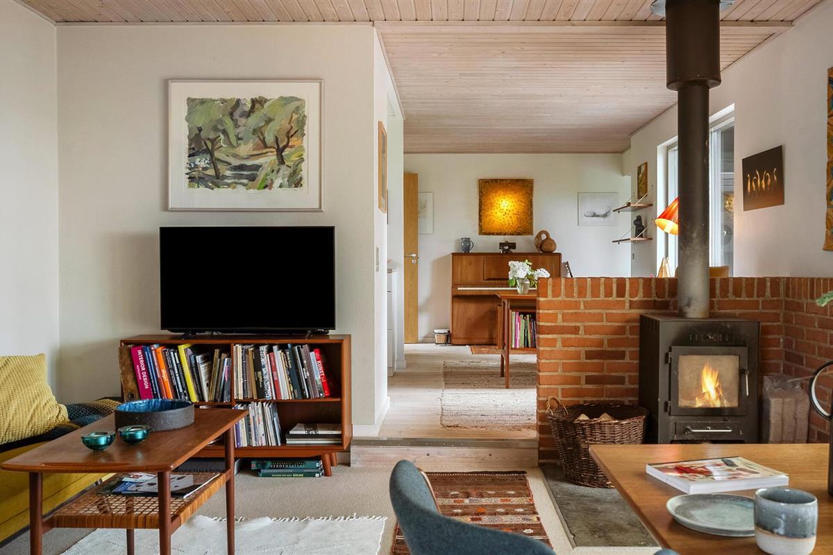 Geniet van de rust in je vakantiehuis, de verfijnde sfeer en het prachtige licht dat door de grote ramen de kamers binnenstroomt. Het interieur van het huis combineert Scandinavische charme met modern comfort. Ontspan in de gezellige woonkamer met houtkachel, zithoek en tv. De aangrenzende serre is een heerlijke plek om te genieten van een maaltijd of een kopje thee met uitzicht op de tuin. Gebruik het bureau om te lezen of schrijven in een rustige omgeving en maak muziek in een gezellige sfeer. Je vindt alles wat je nodig hebt om te koken in de open keuken met mooie houten kasten. Laat je inspireren door de gezellige sfeer.