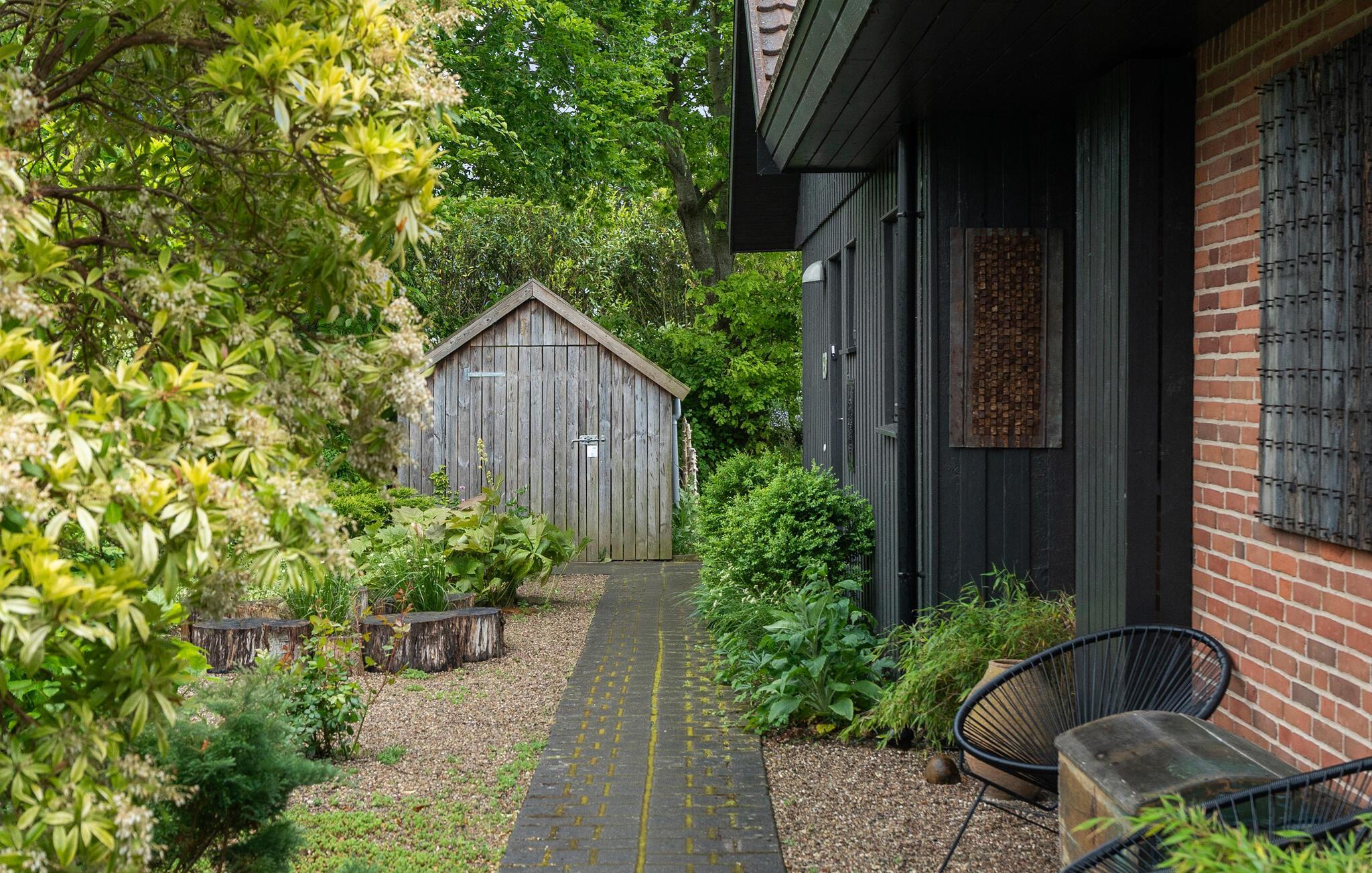 Stap het overdekte terras op en geniet van het uitzicht over de goed onderhouden tuin met bloeiende struiken en heggen. Neem plaats in de zithoek, geniet van je maaltijden buiten of leun achterover in een van de comfortabele stoelen.