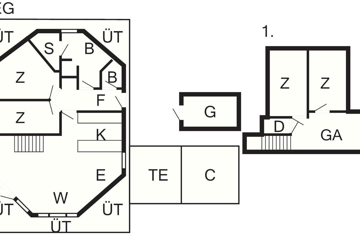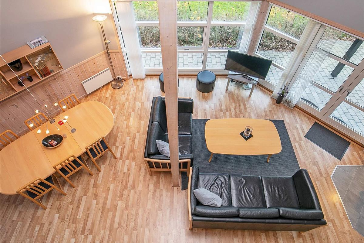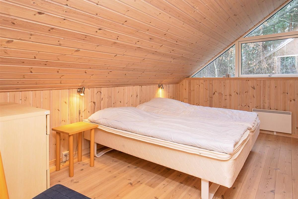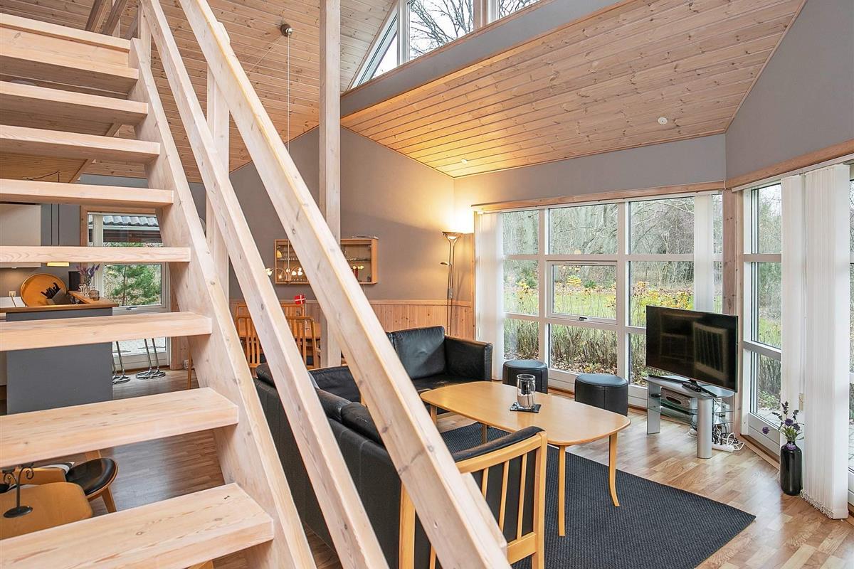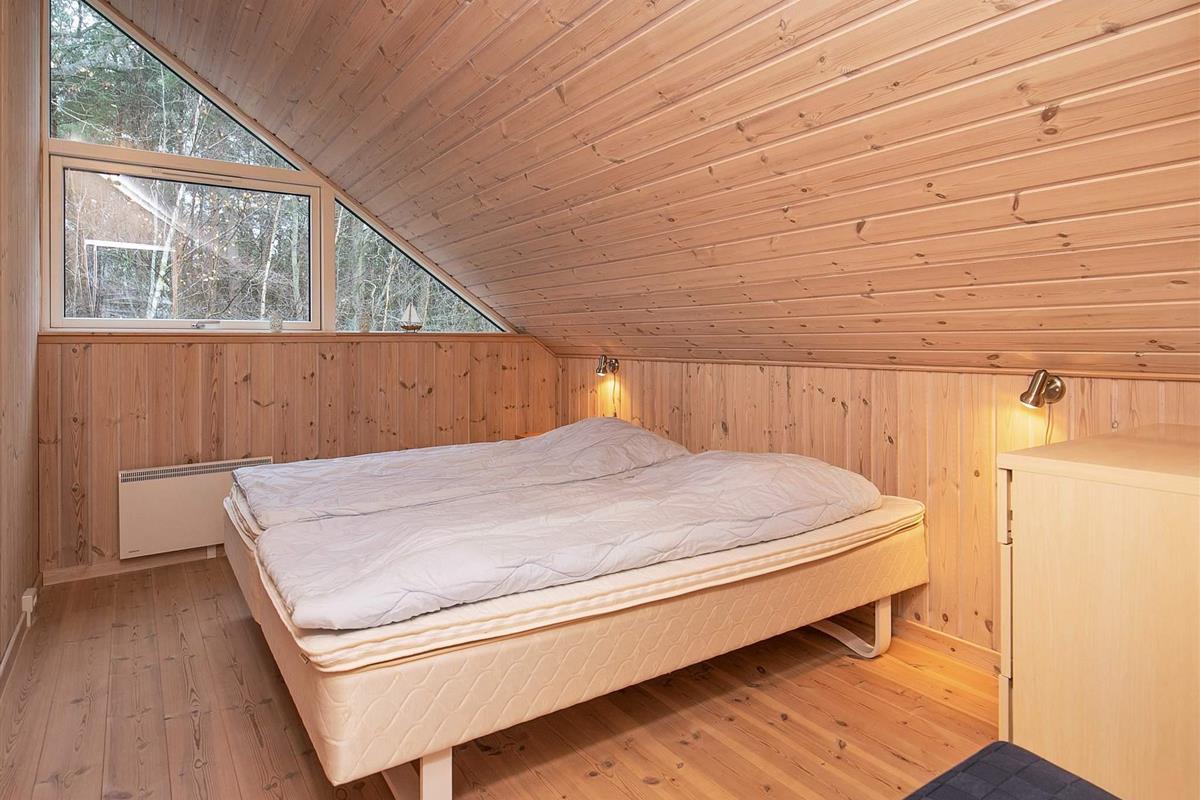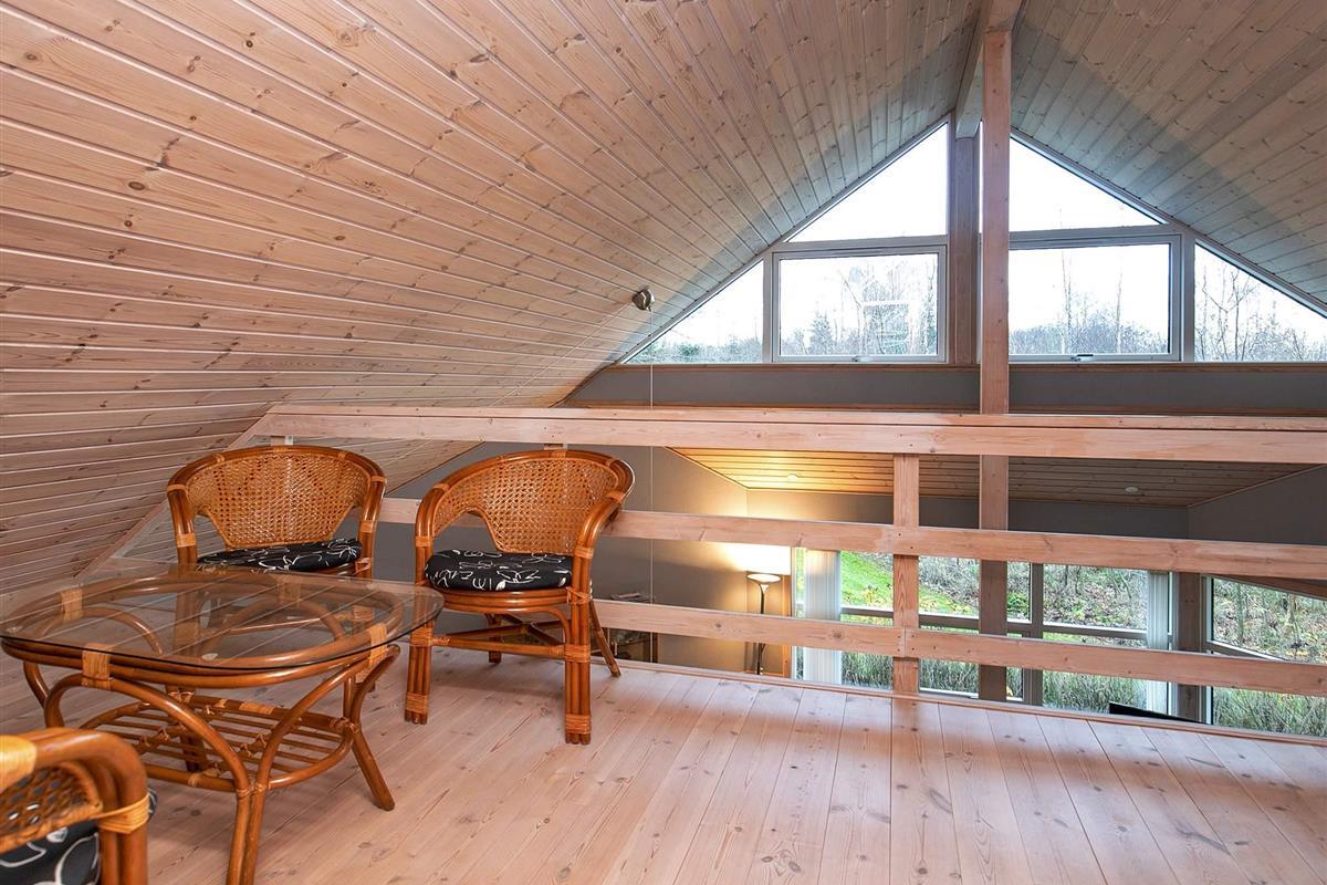 Von Architektenhand ganz individuell und einzigartig gestaltetes, 8-eckiges Ferienhaus mit großen, hellen und gut ausgestatteten Zimmern und teilweise bodentiefen Fensterbereichen für viel Tageslicht. Steht auf einem attraktiven, recht abgelegenen Naturgrundstück mit Eichen, Birken und Farnen, in der Nähe der Ortschaft Byrum.