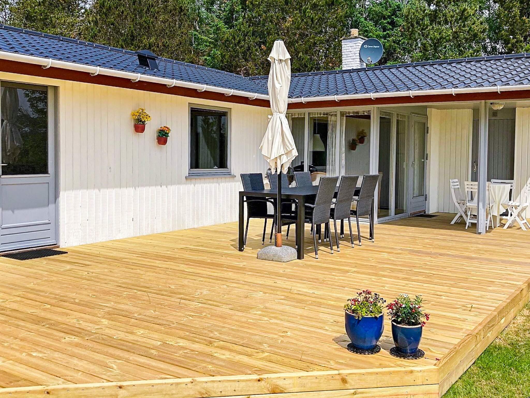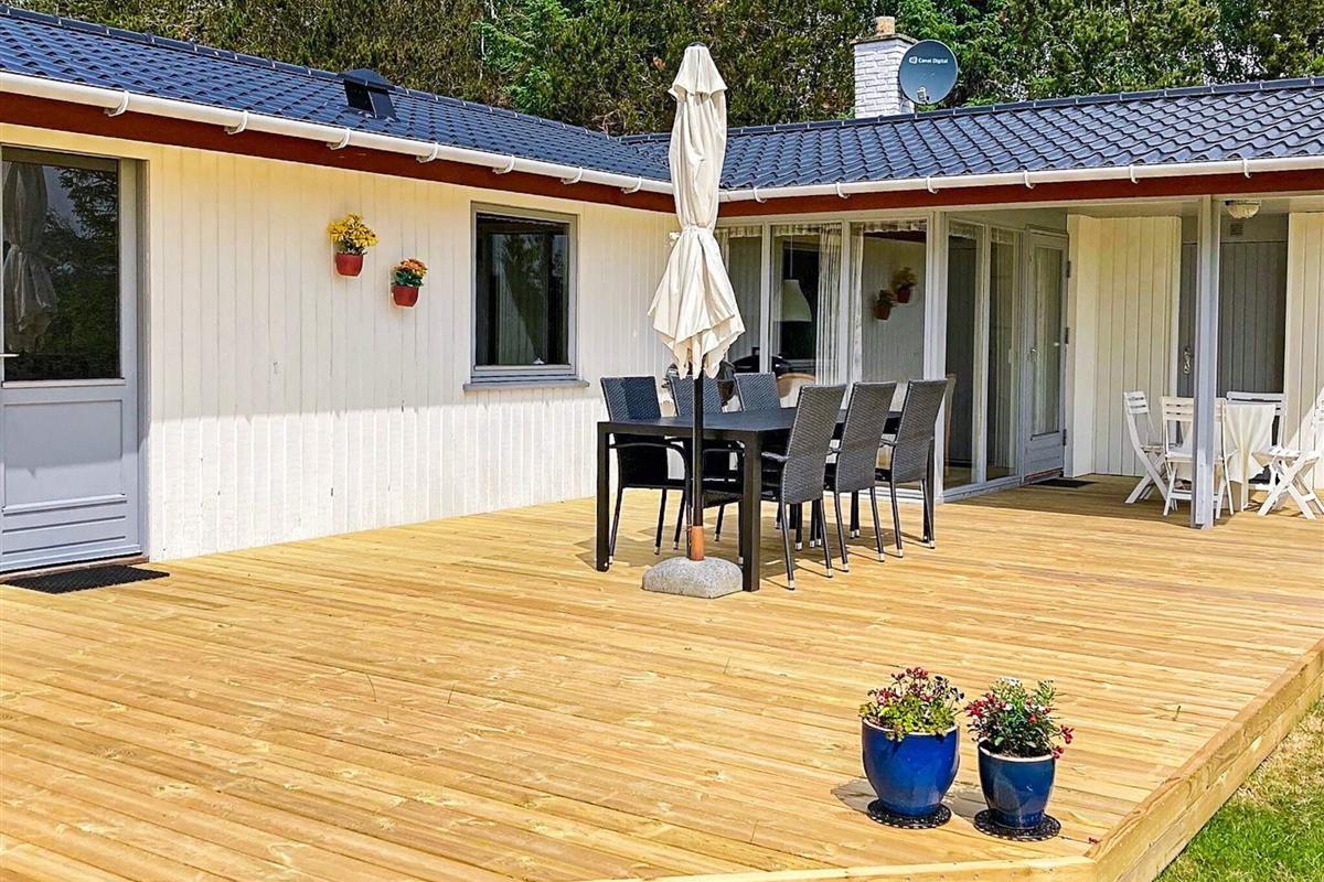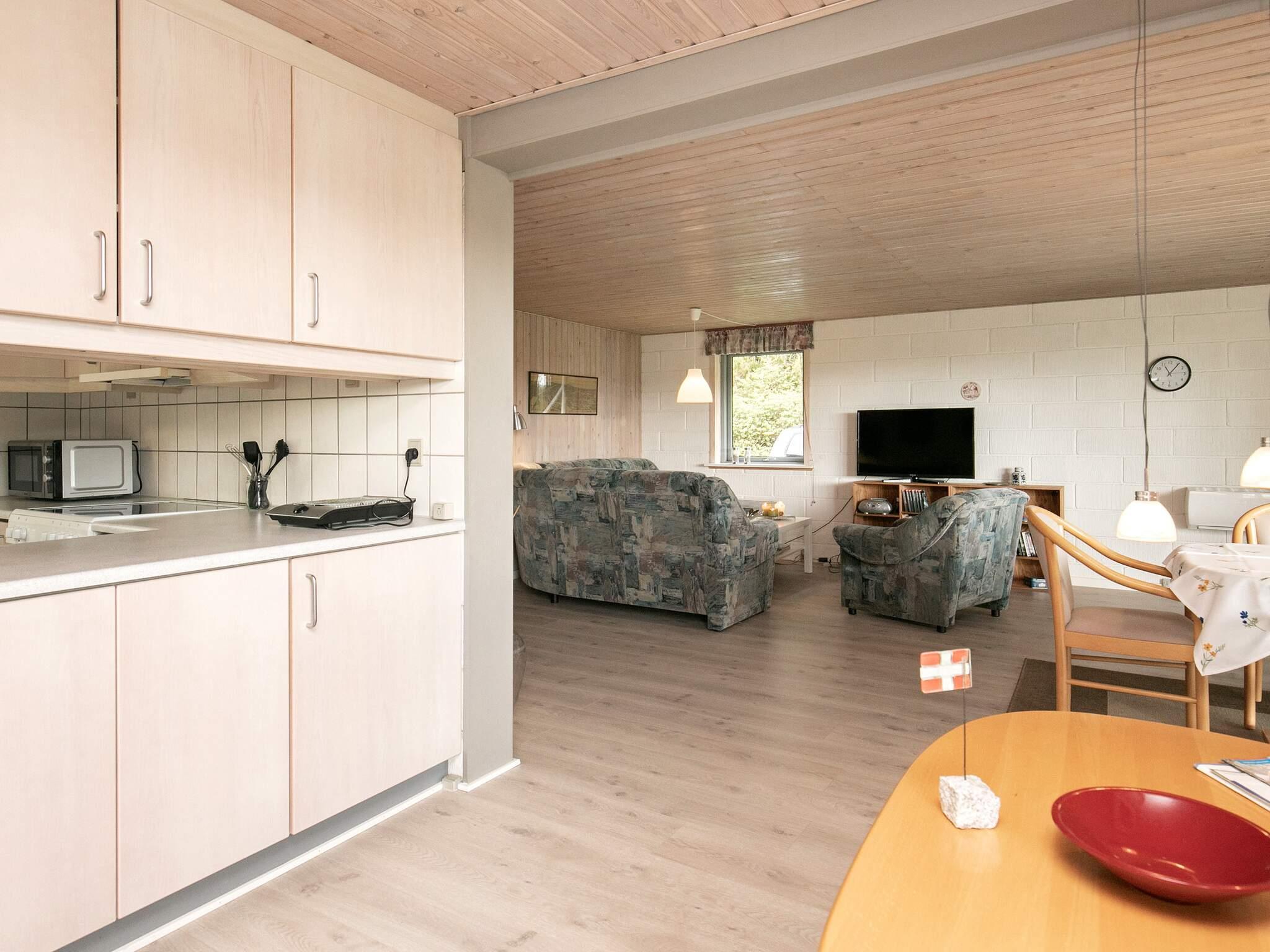 Ferienhaus mit schöner, großer Sonnenterrasse und attraktiver Lage auf einem großen, sonnigen Naturgrundstück etwa 1 km von Meer und Strand entfernt. Das Haus ist hell und wohnlich eingerichtet und hat drei Schlafzimmer mit Stauraum. Geräumiges Badezimmer und praktische Gästetoilette direkt neben dem kleinen Schlafbereich. Gut ausgestattete Küche in offener Verbindung zum Wohnzimmer mit Blick ins umliegende Grün, wo Rehe und Hasen zu Hause sind.