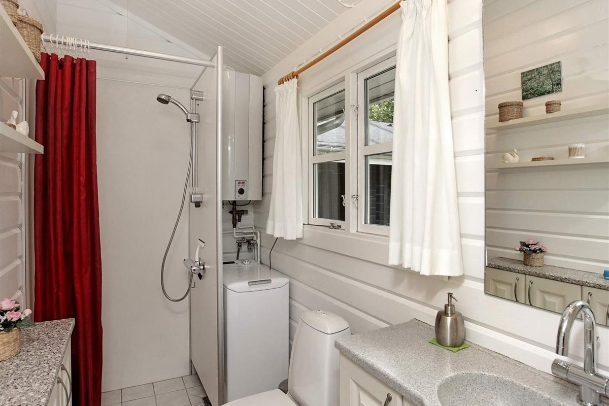 Helles Ferienhaus in landschaftlich reizvoller Umgebung, quasi mitten auf der Ferieninsel Læsø. Steht auf einem großen Rasengrundstück mit Bäumen. Im Haus gibt es drei gute Schlafzimmer sowie ein Bad mit Dusche/WC und einen gut ausgestatteten Küchen-/Wohnbereich mit sowohl Holzofen als auch klimafreundlicher Wärmepumpe zur Verfügung. Vom Wohnbereich aus hat man direkten Zugang zu einer großen, überdachten Terrasse für warme Sommertage und lauschige Grillabende.