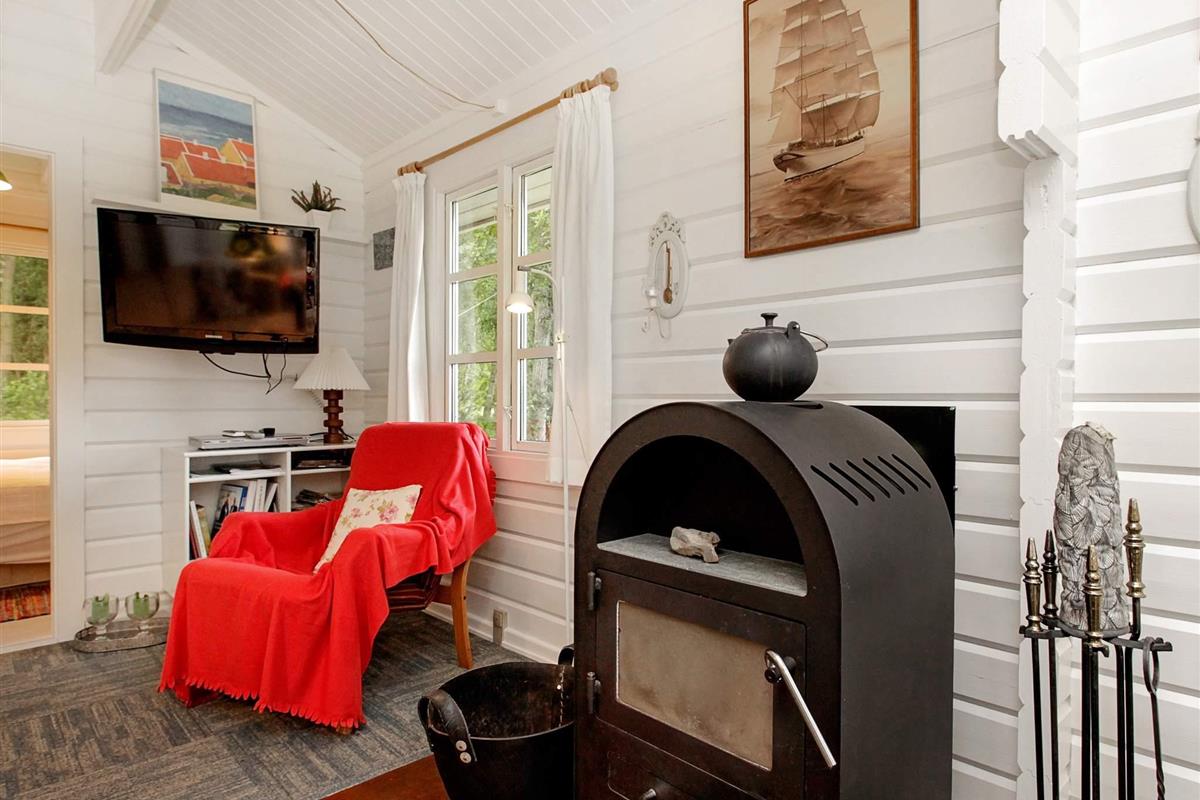Und: Terrasse, Carport, E-Heiz., Luft-Luft-Wärmepumpe, Grill, Naturgrundst. m. Bäumen 5600 m2, gemütliche Möblierung, Ferienhausgebiet, Nichtraucherhaus