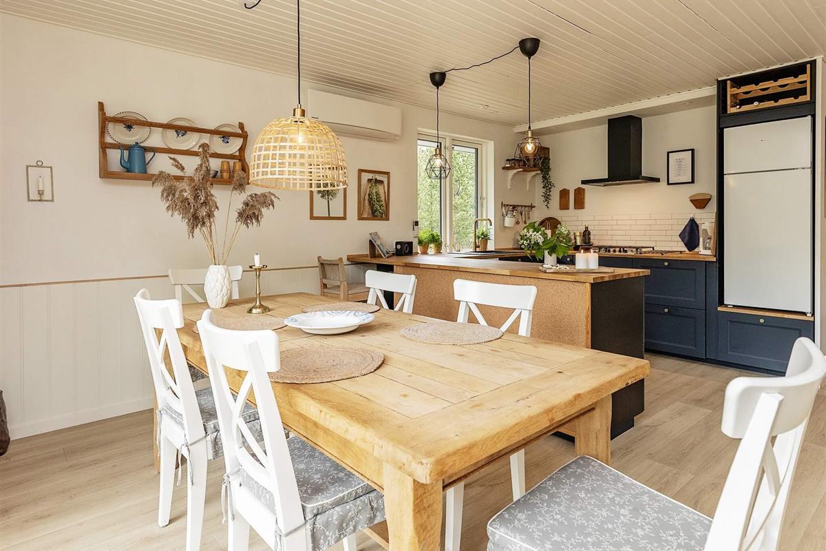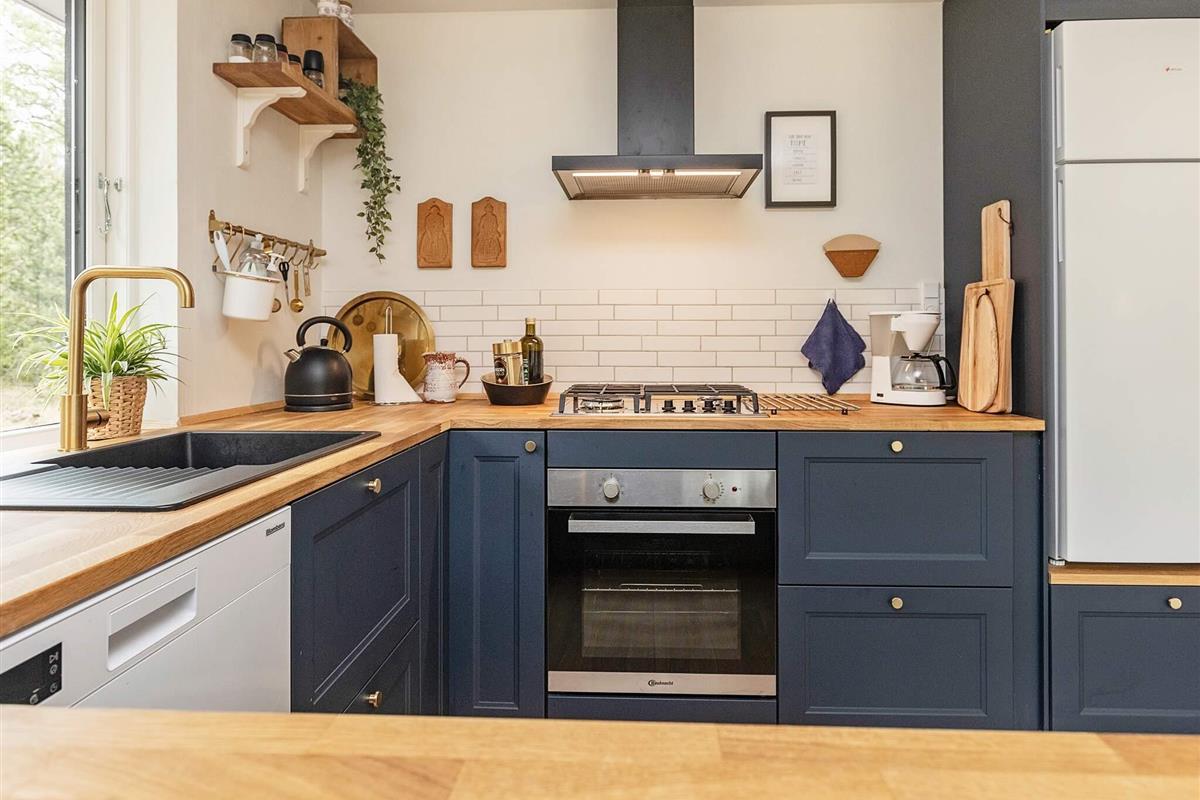 Im Inneren bildet der offene Küchen- und Wohnbereich mit Ess- und Sitzbereich einen zentralen Mittelpunkt für das Familienleben. Das Haus verfügt über drei Schlafzimmer, zwei davon mit Doppelbetten und viel Stauraum, sowie ein geräumiges Badezimmer mit Dusche und Fußbodenheizung. Die geschmackvolle Inneneinrichtung sorgt für Komfort und betont gleichzeitig die Helligkeit und Luftigkeit des gesamten Hauses.