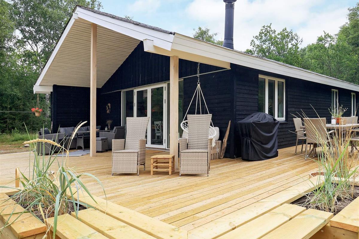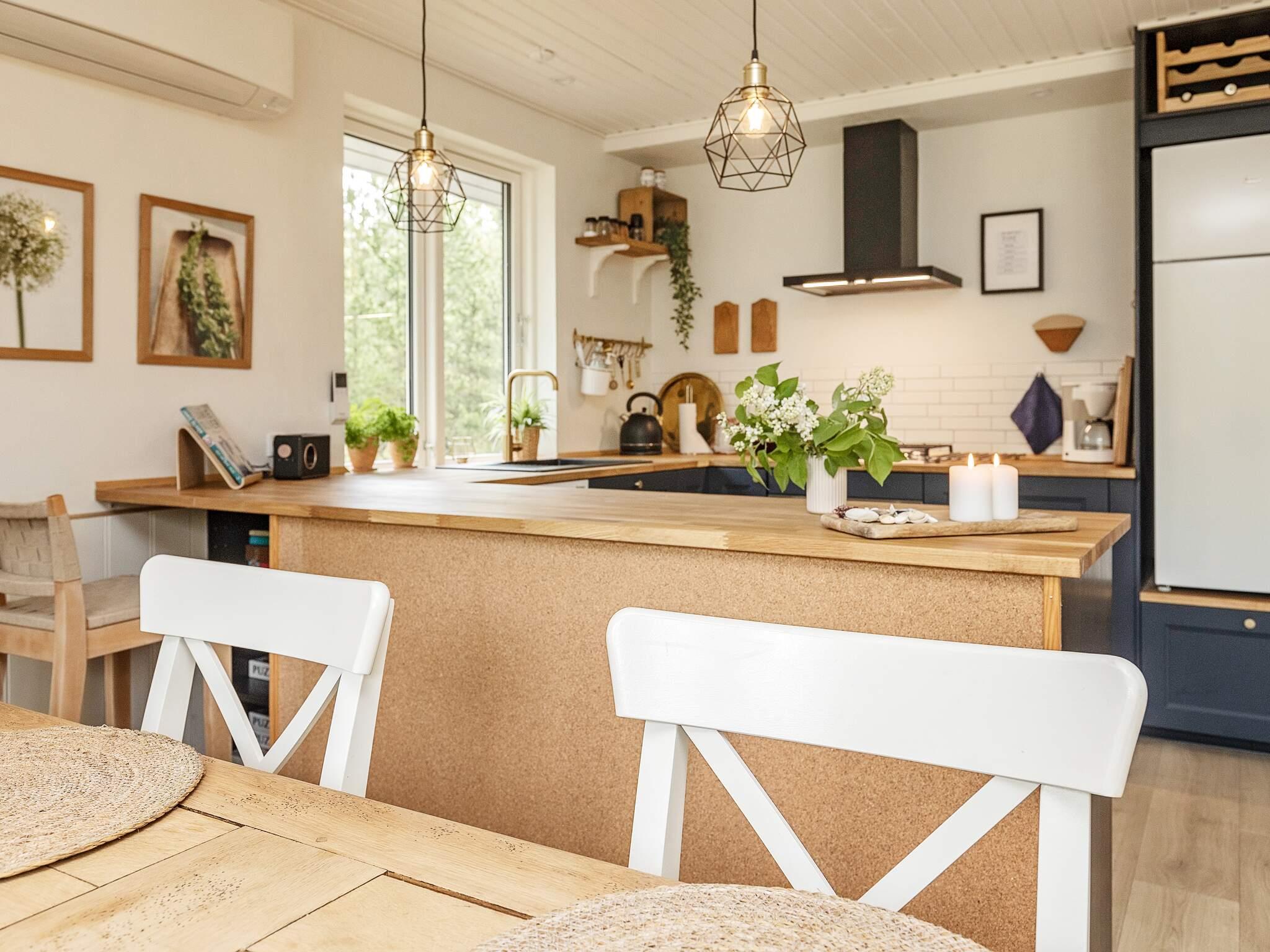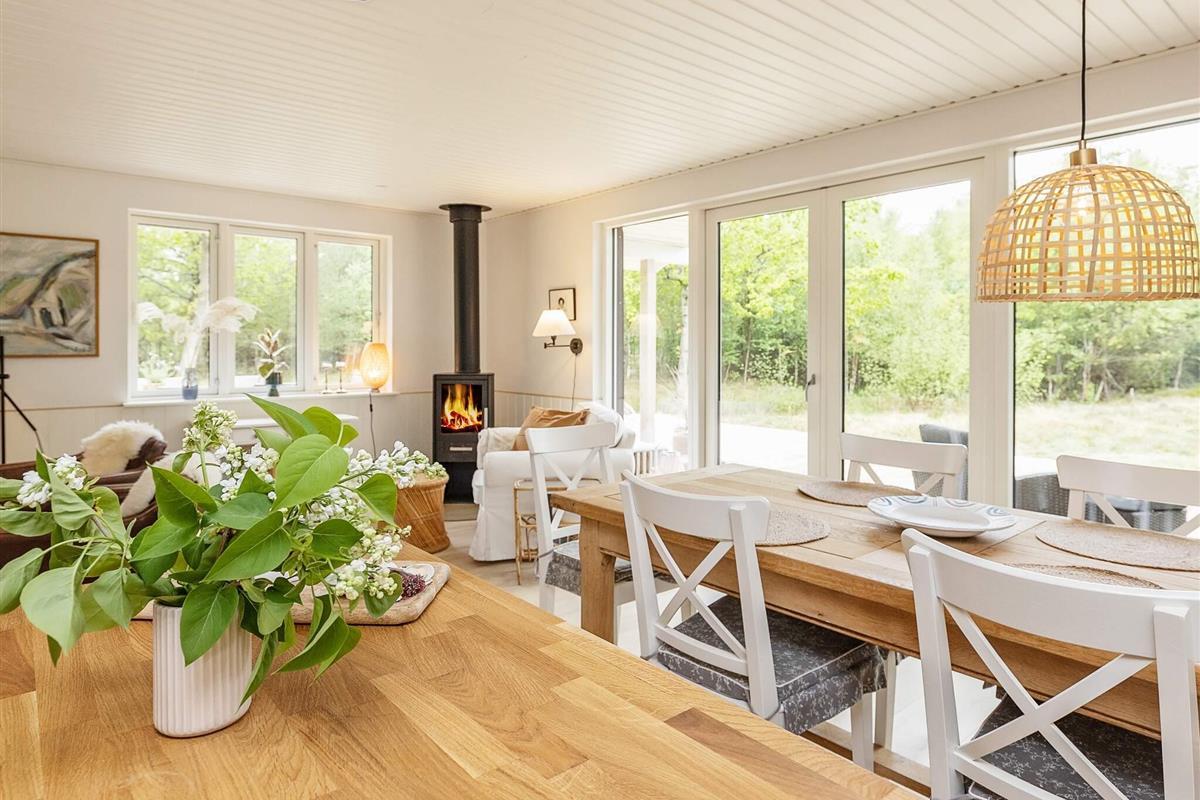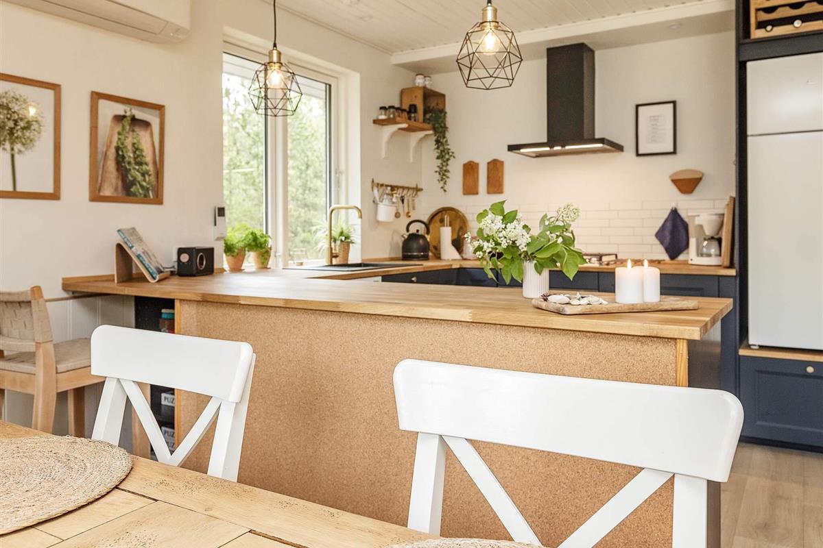 Dieses wunderschön renovierte Ferienhaus liegt auf der malerischen Insel Læsø auf einem sonnigen und abgeschiedenen Naturgrundstück mitten im Grünen. Das Haus ist in einem hellen, leicht maritimen Stil gestaltet und bietet eine einladende Atmosphäre. Es eignet sich perfekt für Familien oder kleine Gruppen, die Ruhe und Entspannung suchen. Große, raumhohe Fenster im Wohnbereich bieten einen herrlichen Blick auf die umliegende Natur und direkten Zugang zur teilweise überdachten Holzterrasse, ideal für Mahlzeiten im Freien oder einfach zum Entspannen an der frischen Luft.