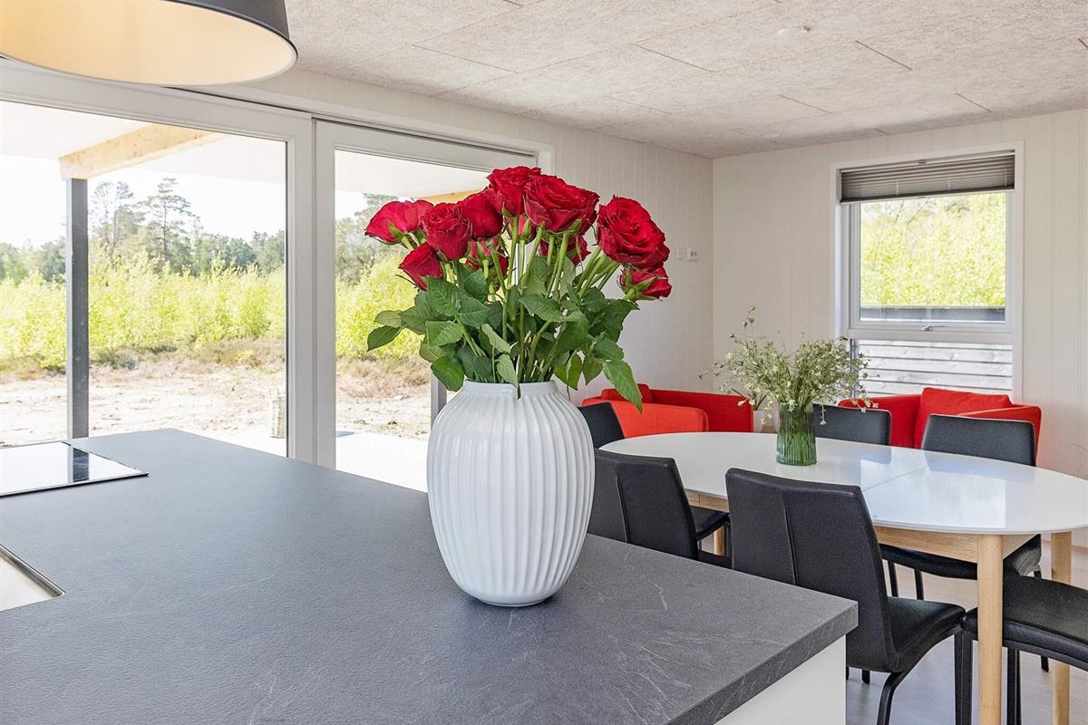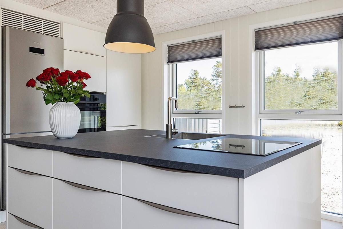Attraktives und modernes Ferienhaus aus dem Jahr 2023 mit zeitgemäßem Komfort in ruhiger Lage, nur einen kurzen Spaziergang vom Hafen in Østerby Havn entfernt. Vom Dachgeschoss-Wohnbereich im ersten Stock genießen Sie einen herrlichen Blick auf das Meer und die malerische Bovet-Bucht.